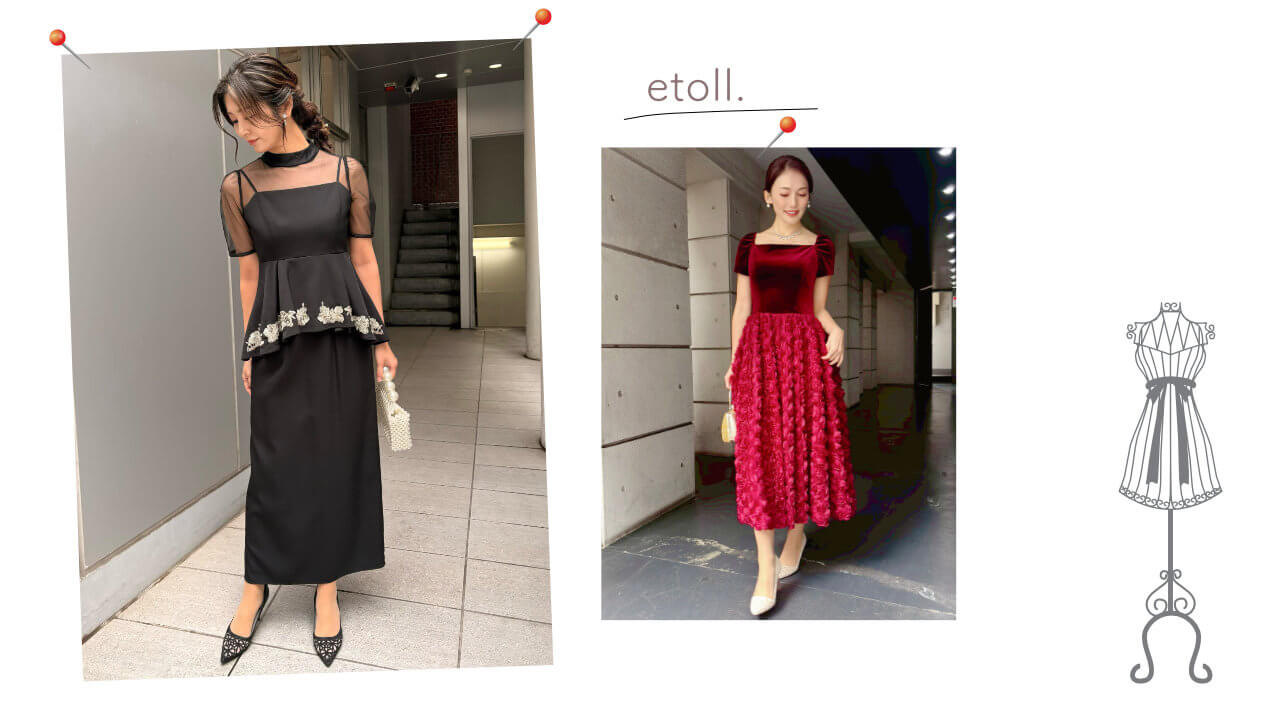 こんにちは。随分ご無沙汰してしまいました。秋の結婚式シーズン成人式シーズンをバタバタと過ごしそしてこれから春の結婚式と卒業パーティシーズンを迎えるのですが本日本当に久しぶりに一瞬時間ができましたので新ブランドのご紹介をさせて頂きます。新ブランドetoll.ですが年末のパーティシーズン向けに仕入れておりましたので今紹介するにはギリギリのドレスの素材も多いですが(;'∀')個性的なデザイン性とシルエット女性の綺麗に見える部分をうまく引き出してくれるそんなドレスラインになっています。 こちらのドレスはワンピースにペプラムがセットになっておりハイウエストで脚長にみせつつペプラムでお腹周りをカバーメリハリのあるドレスです。後ろ姿もぬかりなく流れるドレープのようなシルエットが美しいです。 025~2026FWで当店で特に力を入れていたベロアシリーズから大人タイトドレス。この配色がまた上品で大人ドレスとして仕入れましたが蓋を開けると20代の方にとても人気が高くスタイルアップできるドレスです。 個性派の方に是非おすすめしたい新ブランド。新商品も随時入荷いたしますのでこのあとも是非チェックしてみてください。レンタルドレス・結婚式ドレス・パーティドレスはレンタルドレスmy closetまで。