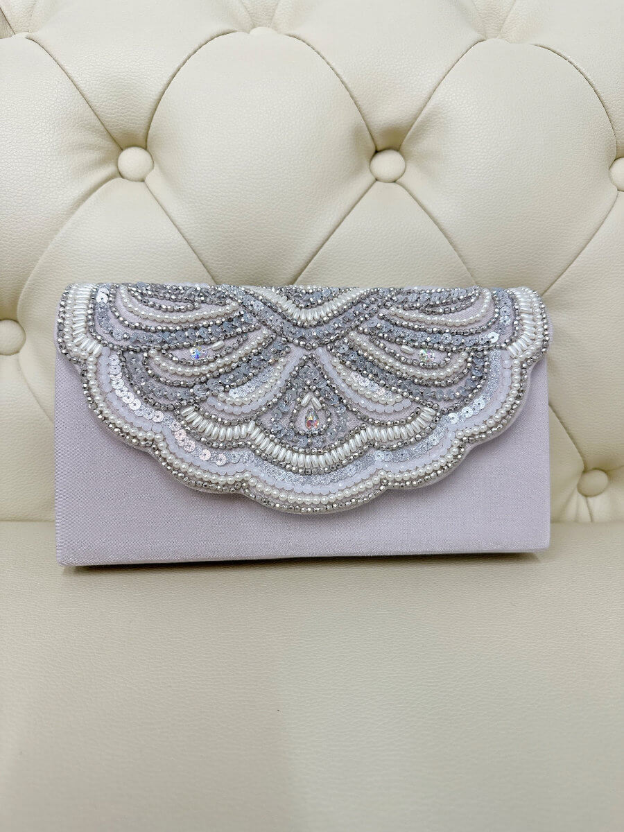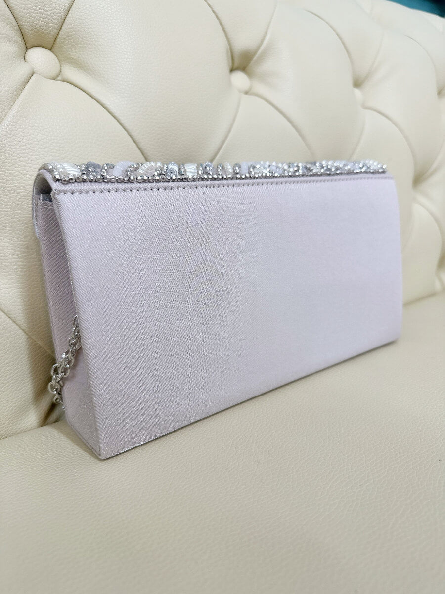 ◇カラー:グレージュ◇商品について:収納がたっぷりのパーティバッグ。 ビジューやパールの華やかなデザインがとても可愛くワンポイントになるバッグです。 ◇大きさ:縦 13cm・横 23.5cm・厚み 5cm