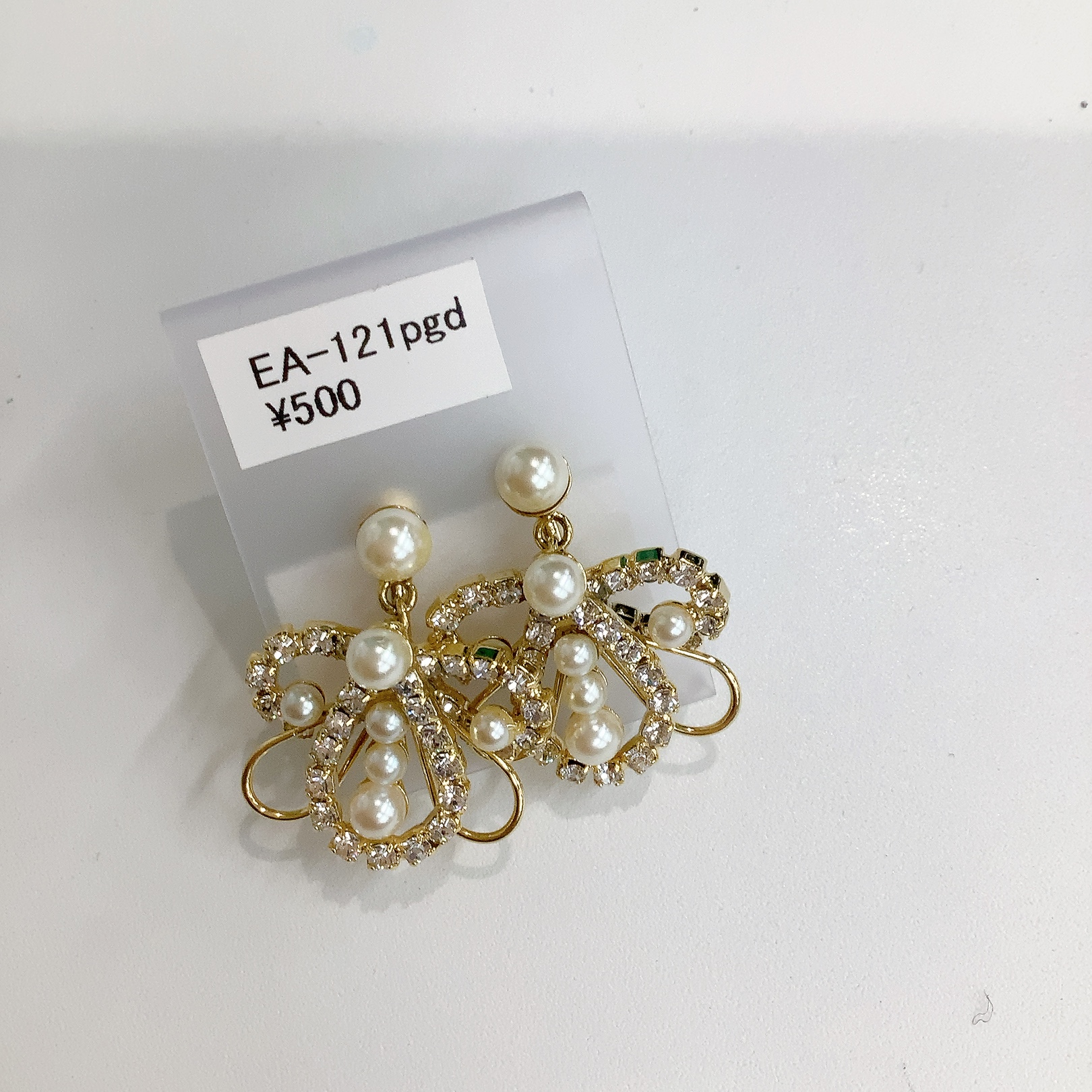 イヤリング バタフライ パール×ラインストーン ゴールド