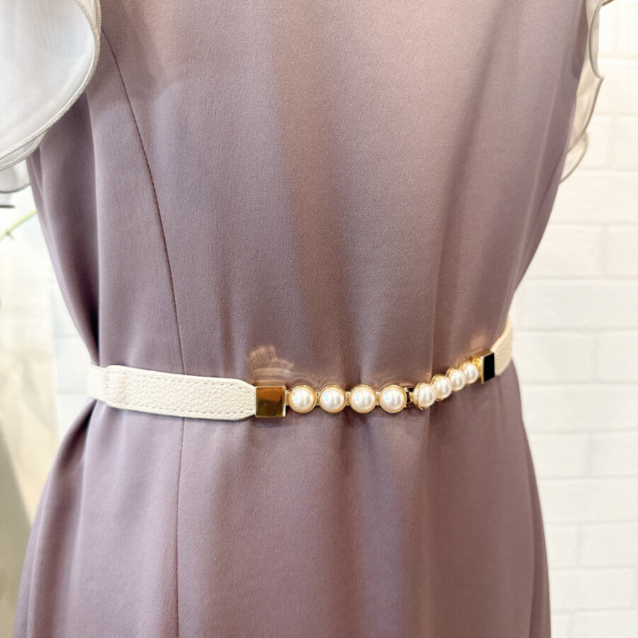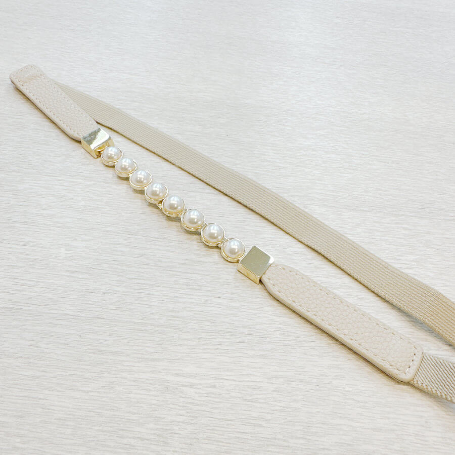 パールバックルベルト ベージュ ゴムなので伸縮性あり Mサイズ~2Lサイズ(66~110cm)まで対応します。