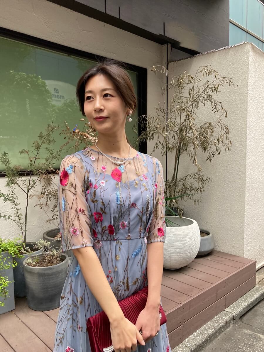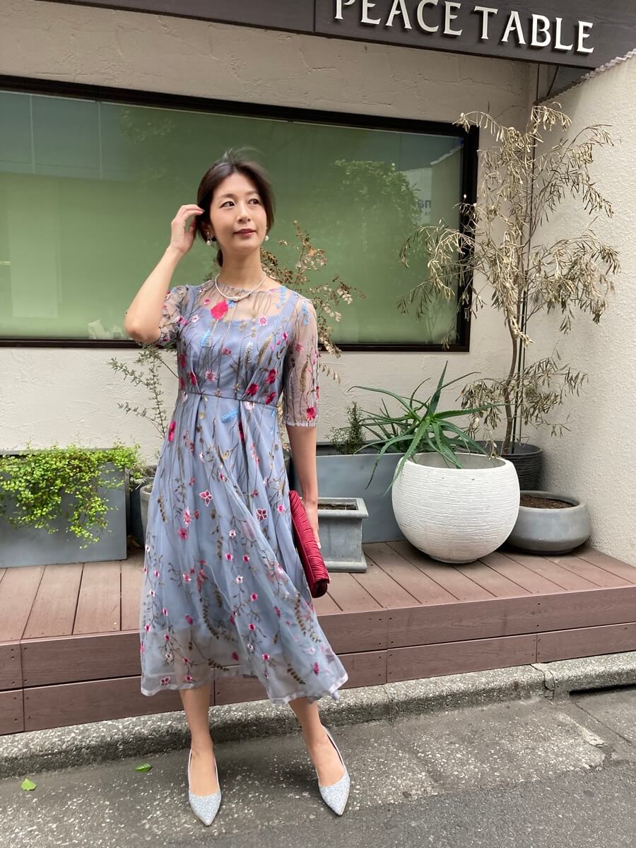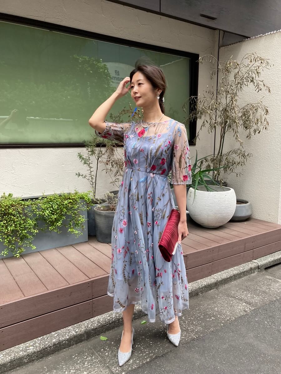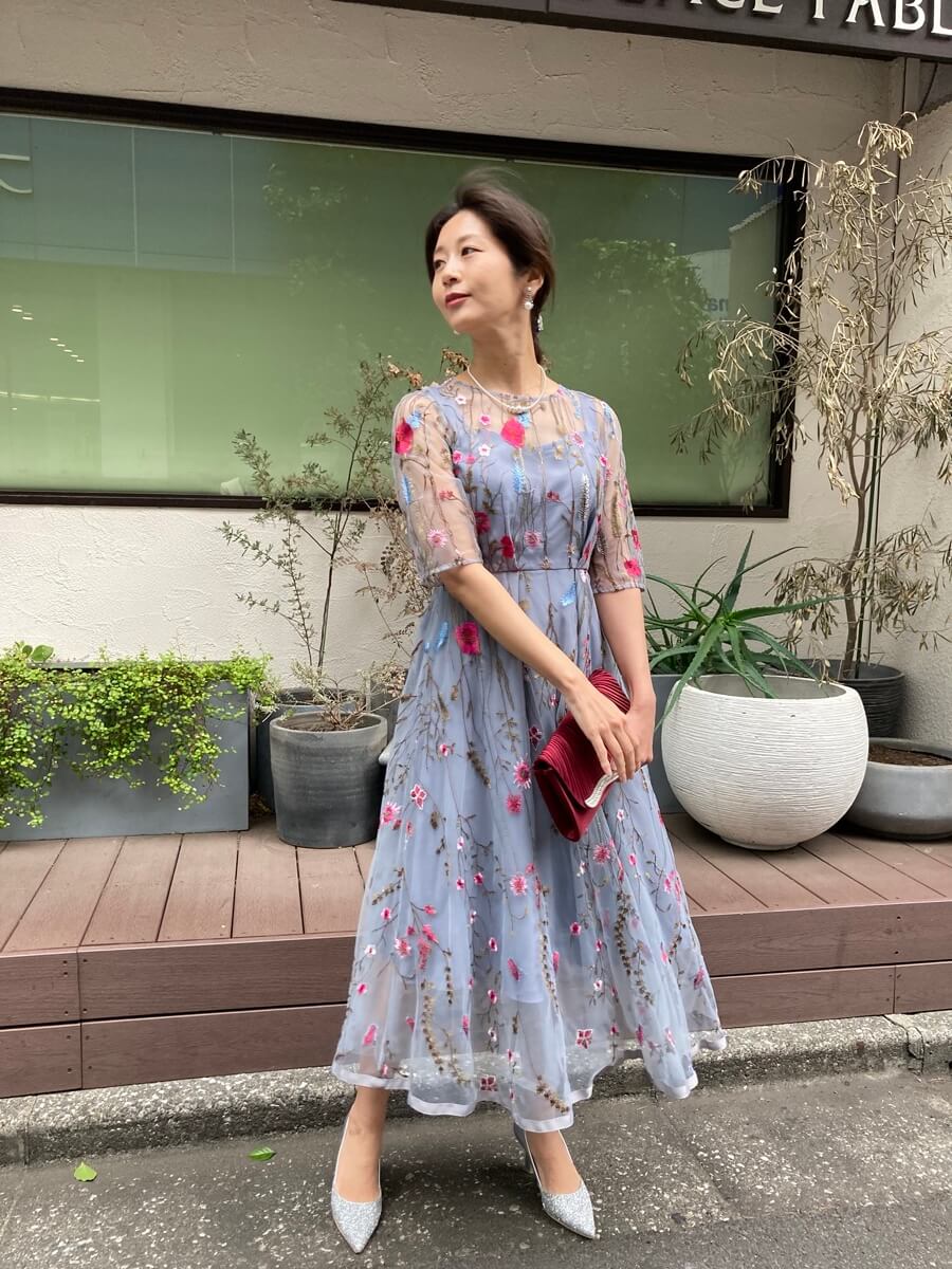 ◇カラー:ブルーグレー◇ブランドサイズ:38(9号)◇商品について:グレイッシュなブルーに色とりどりの草花の刺繍が上品でかわいいドレスです。裾部分がチュールで透け感がありそこがまた可愛いポイント。スカートの内側にチュールが入っており程よくふんわり感がでますが広がらないのでスッキリ着こなせます。ウエスト位置はハイウエストなのでお腹周りが気になりにくいシルエットです。