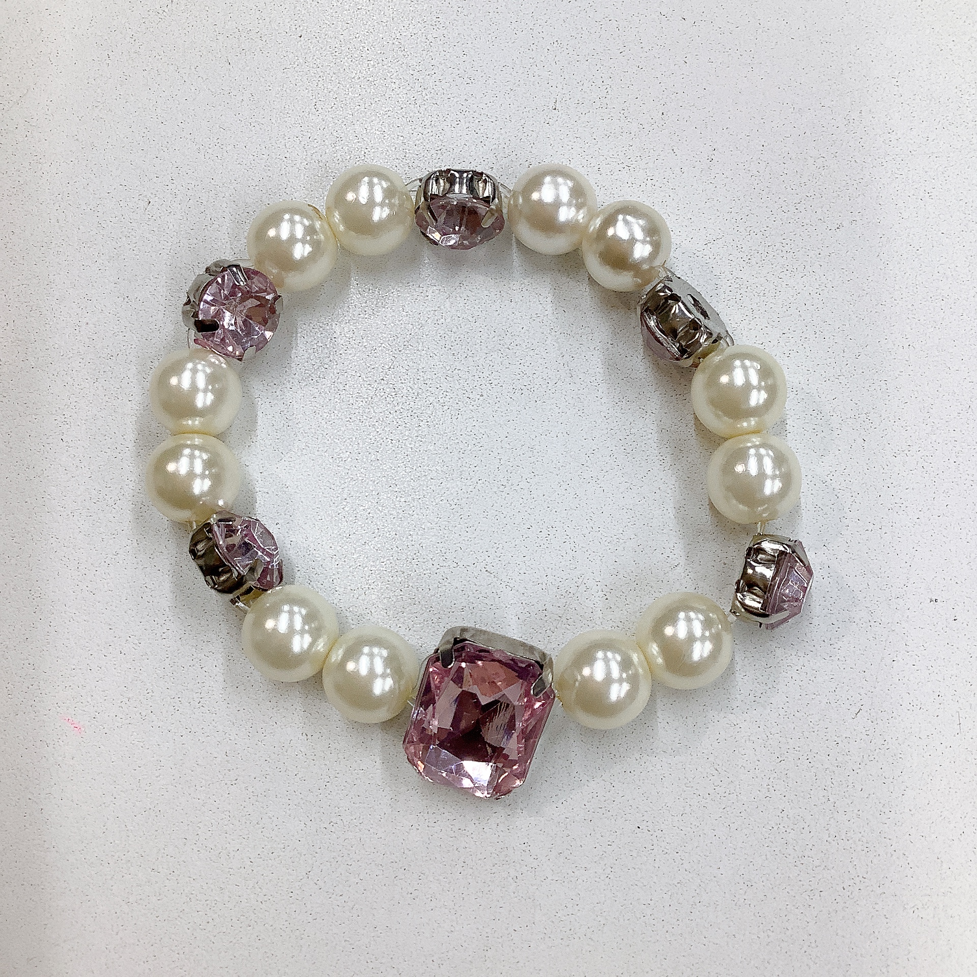 パールとピンクビジューのミックス。 伸縮性あるデザインです。