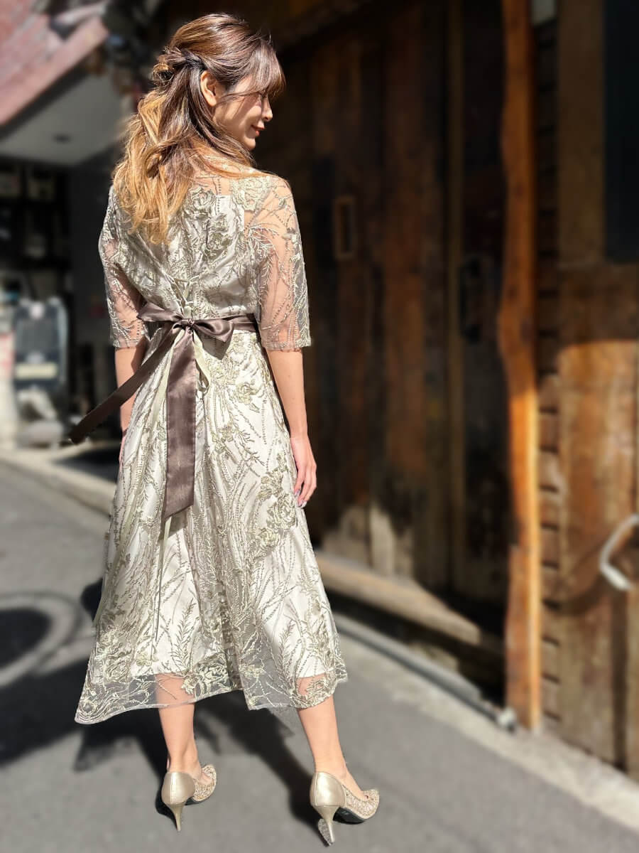 エンプロイダリーチュールドレスXLgr2