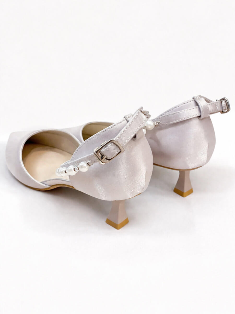 ◇カラー:シルバー ◇サイズ:S/L ※ネットでご注文の際には備考欄におサイズをご記載ください。 ◇ヒール:5cm ◇ストラップはシンプルなものとパールと付け替えが可能です。