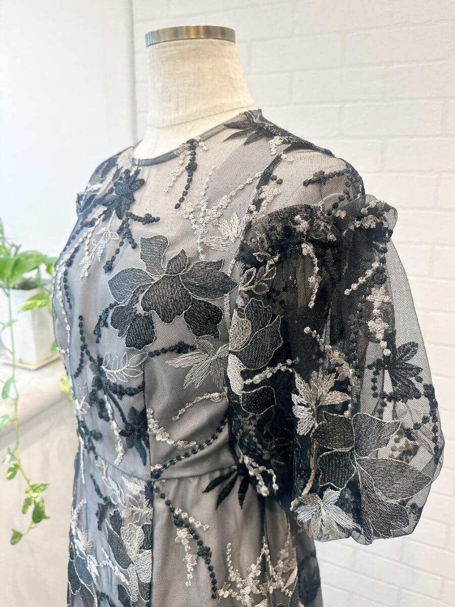 パフスリーブエンブロイダリードレスLBK2