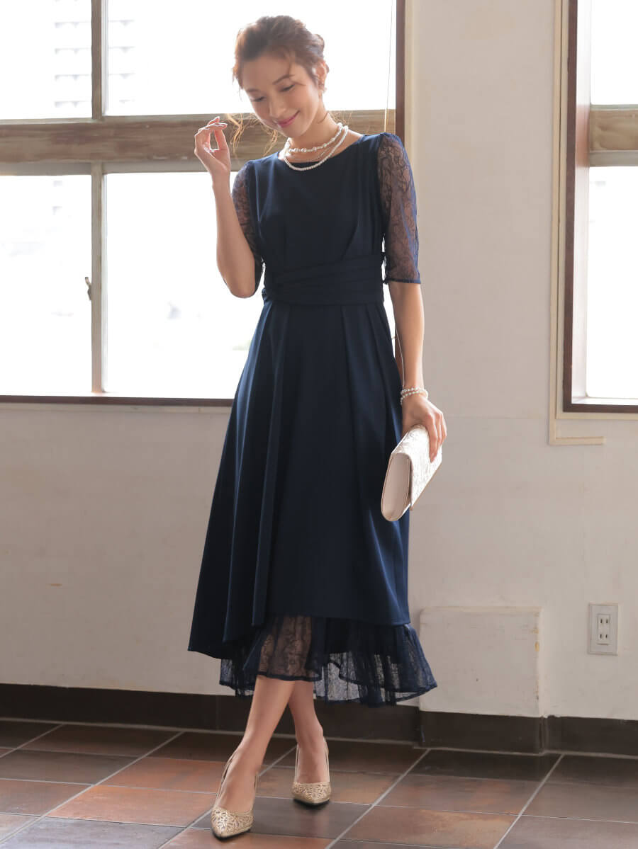 ◇カラー:ネイビー◇サイズ:11号(L)◇商品について:光沢感のある生地にレースのインナーがレイヤード。フィッシュテールのデザインで横からの姿も美しいドレスです。ウエストは太目のラインで絞られておりレースアップドレスなのでおサイズ調整もできるため、ご自身の体型に合わせて着れるドレスです。定番ドレスとして様々なシーンでご着用できます。