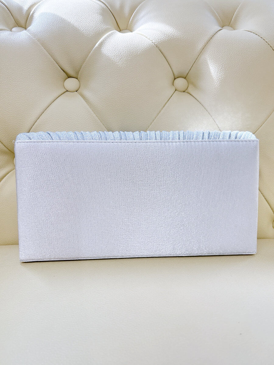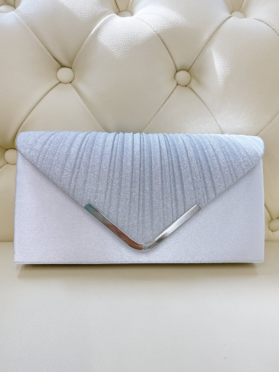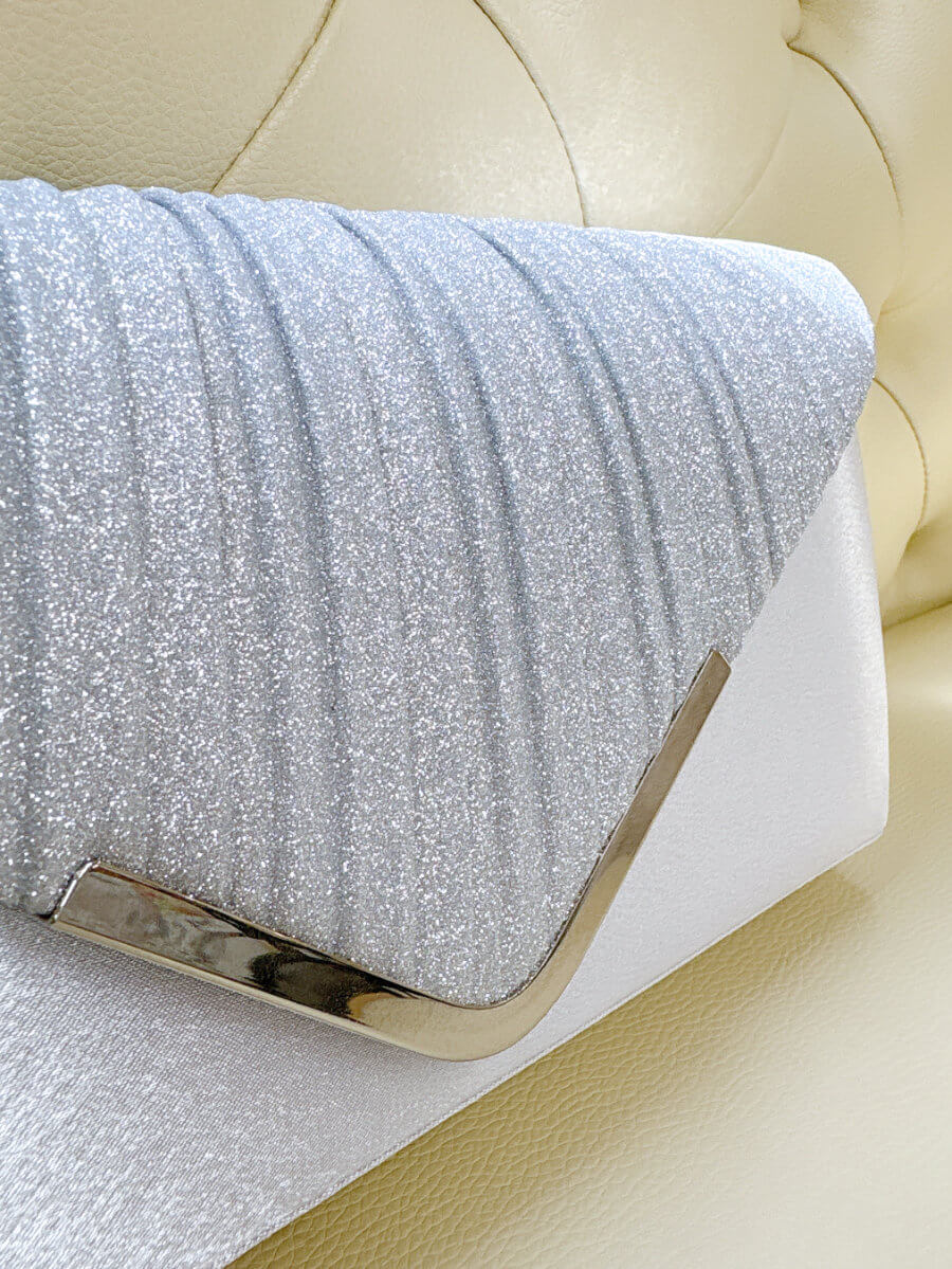 ◇カラー:シルバー×シルバーグリッター ◇大きさ:横26cm/縦13cm/マチ5cm ◇商品について:マチがあるのでしっかり収納ができます。生地もしっかりしており高級感のあるバッグです。封筒型のシルエットがスタイリッシュ。なんにでも合わせやすいシンプルさもあり使いやすいパーティバッグです。