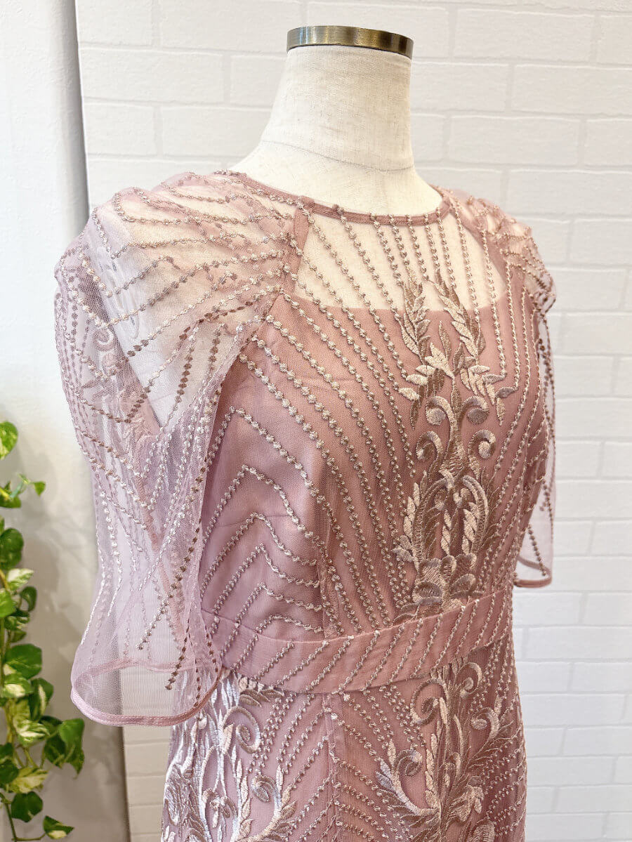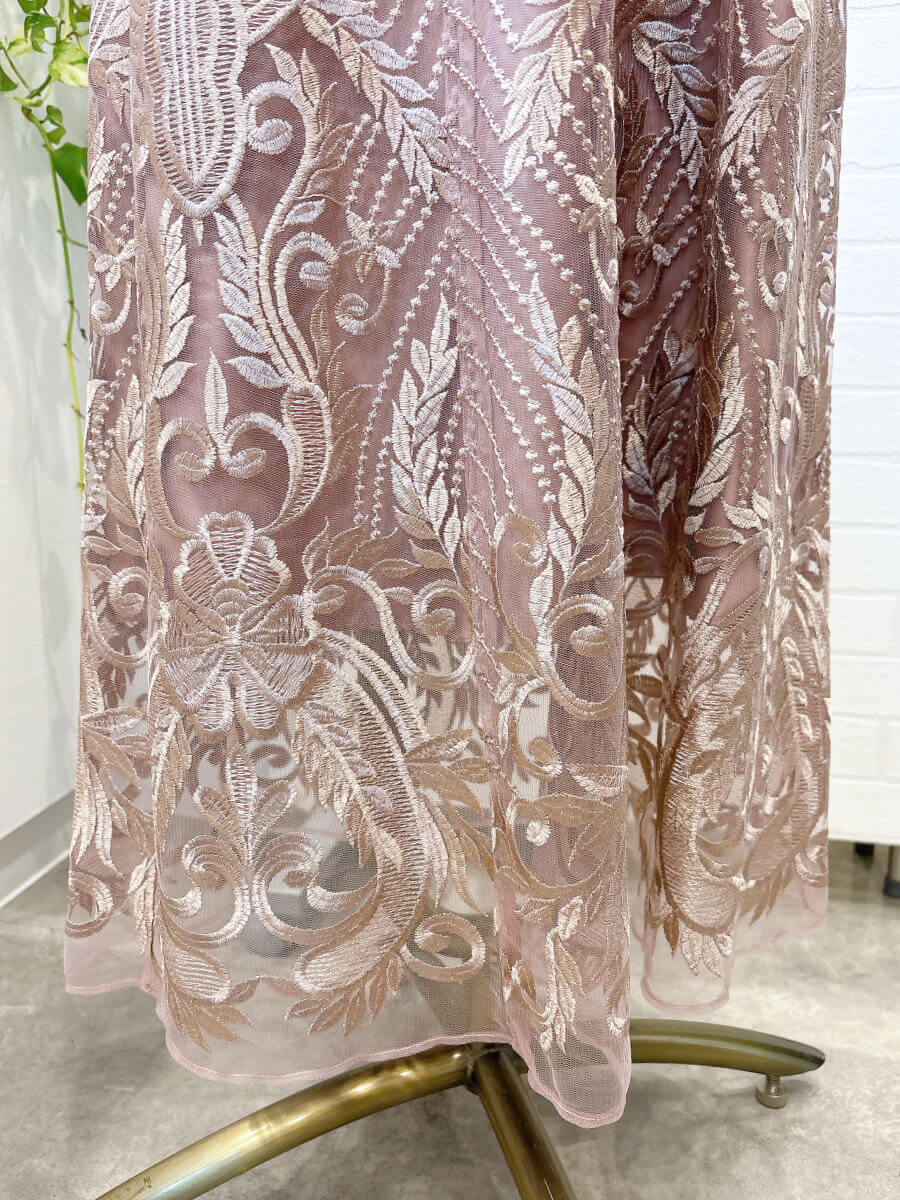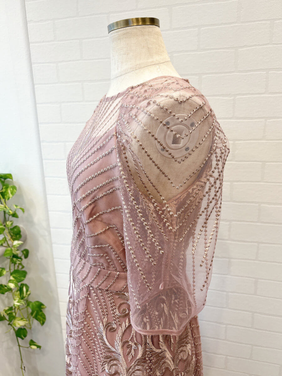 ◇カラー:ピンク◇ブランドサイズ:38(9号)◇商品について:華やかな刺繍ドレス。セミフレアなシルエットが大人の女性にぴったり。長めの丈感で安心上品に着こなせます。ドルマンスリーブの袖がドレッシーでそこに入る刺繍がとても華やか。ハイウエストでシルエット美人なドレスです。ミセスドレスとしてもおすすめです。