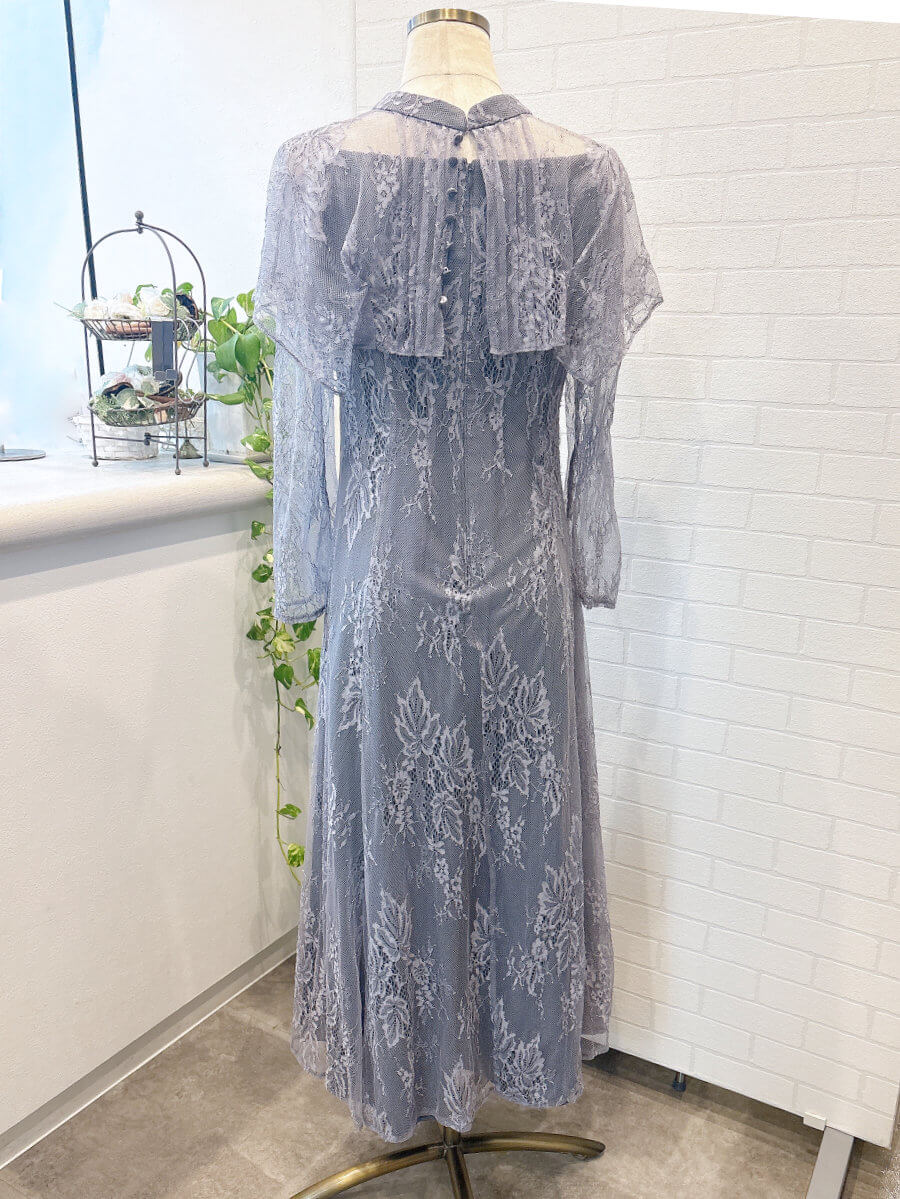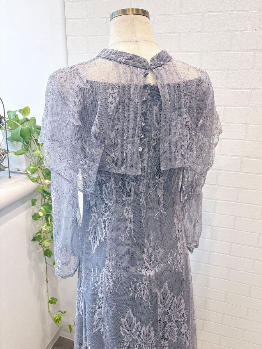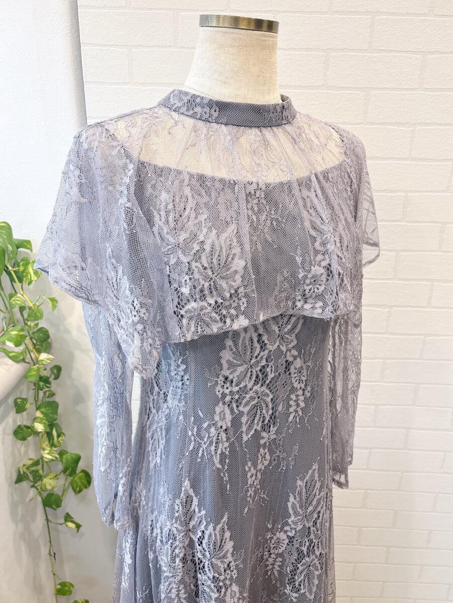 ◇商品について:ロングスリーブのレースワンピースにケープがセットアップ。すっきりシルエットから伸びる腕回りをうまくカバーしてくれます。ショート丈のボレロで足長効果がありすっきり上品に着れます。ケープのボタンはフェイクで一番上をホックで留めます。レース部分は透けますので下着にはお気を付けください。