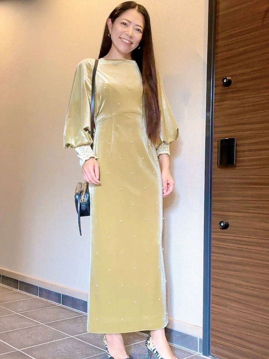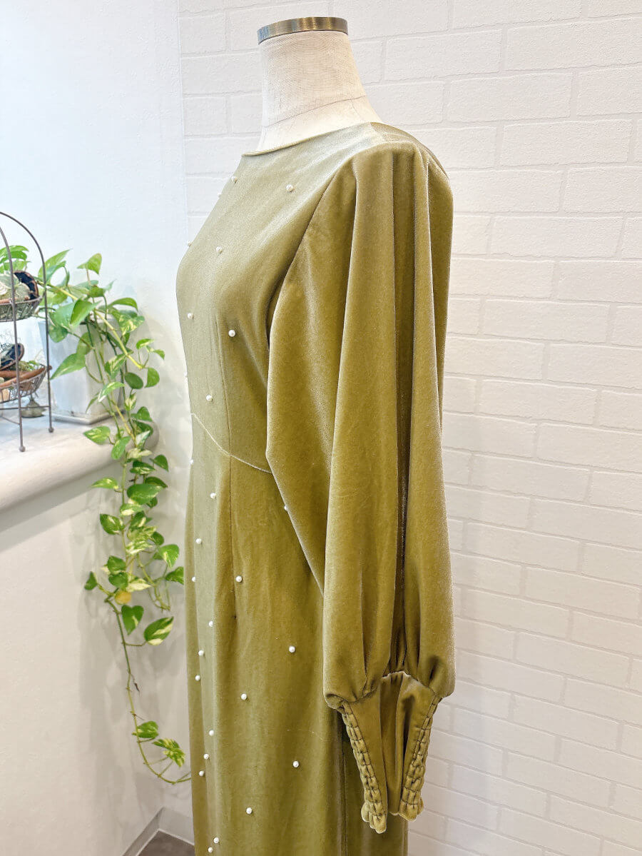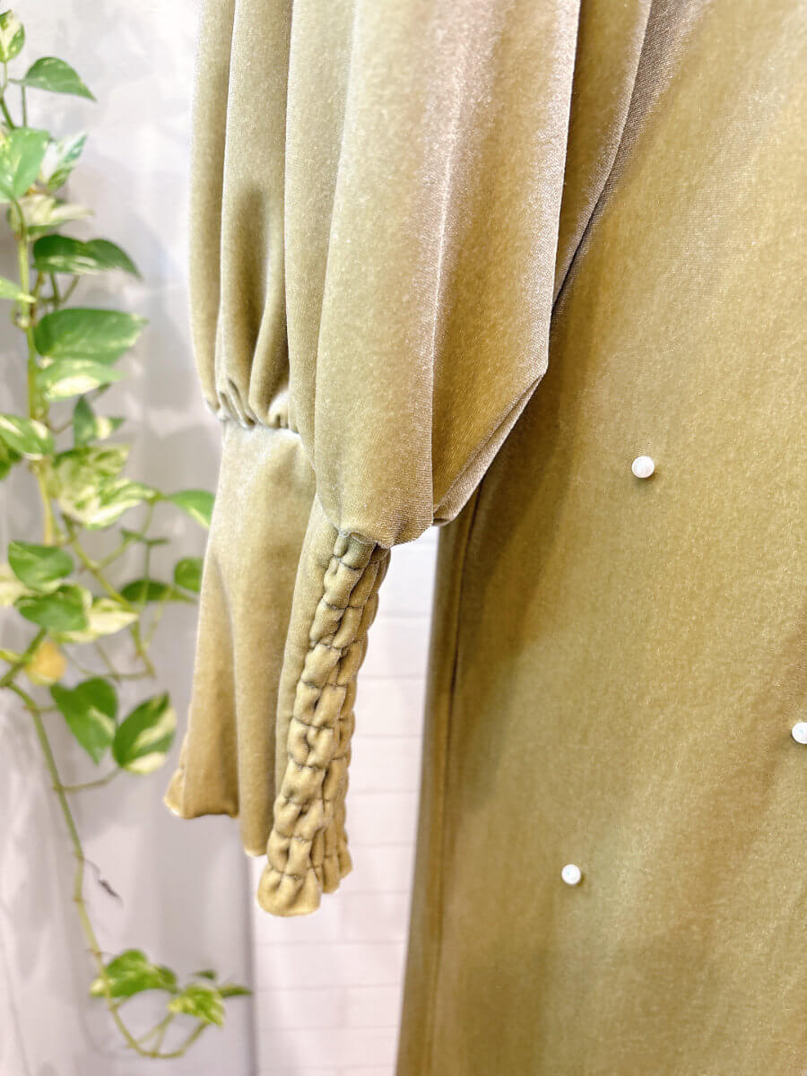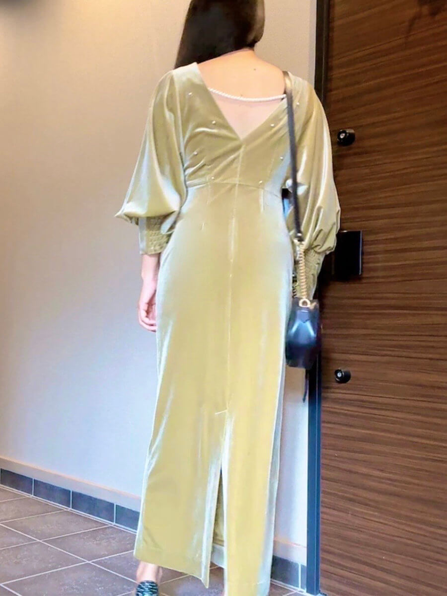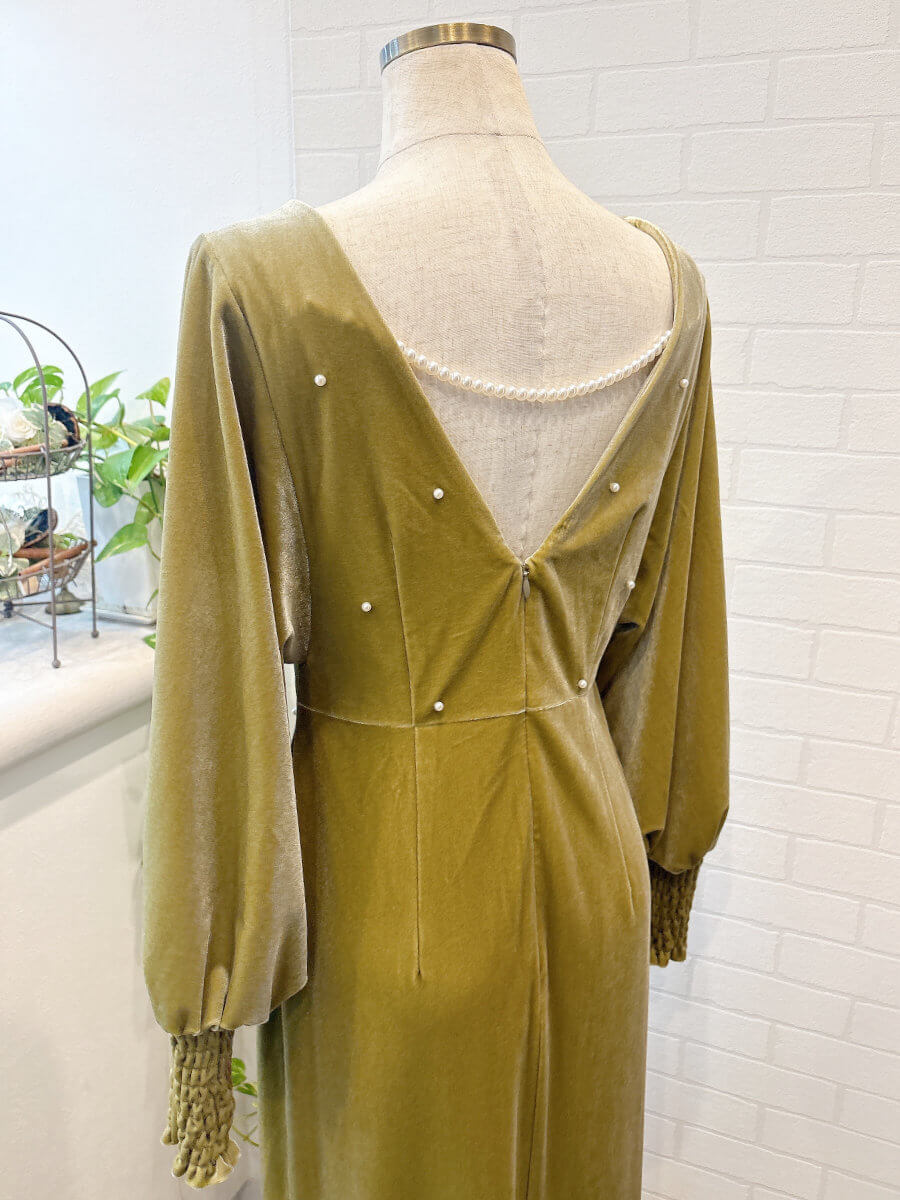 BACK OPEN PEARL VELOUR DRESS Sピスタチオ