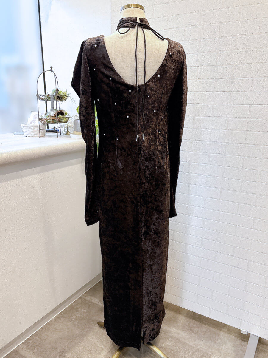 ◇付属品:ベロア素材のチョーカーでデザイン性アップ。後ろ姿のリボンもぬかりないデザインです。