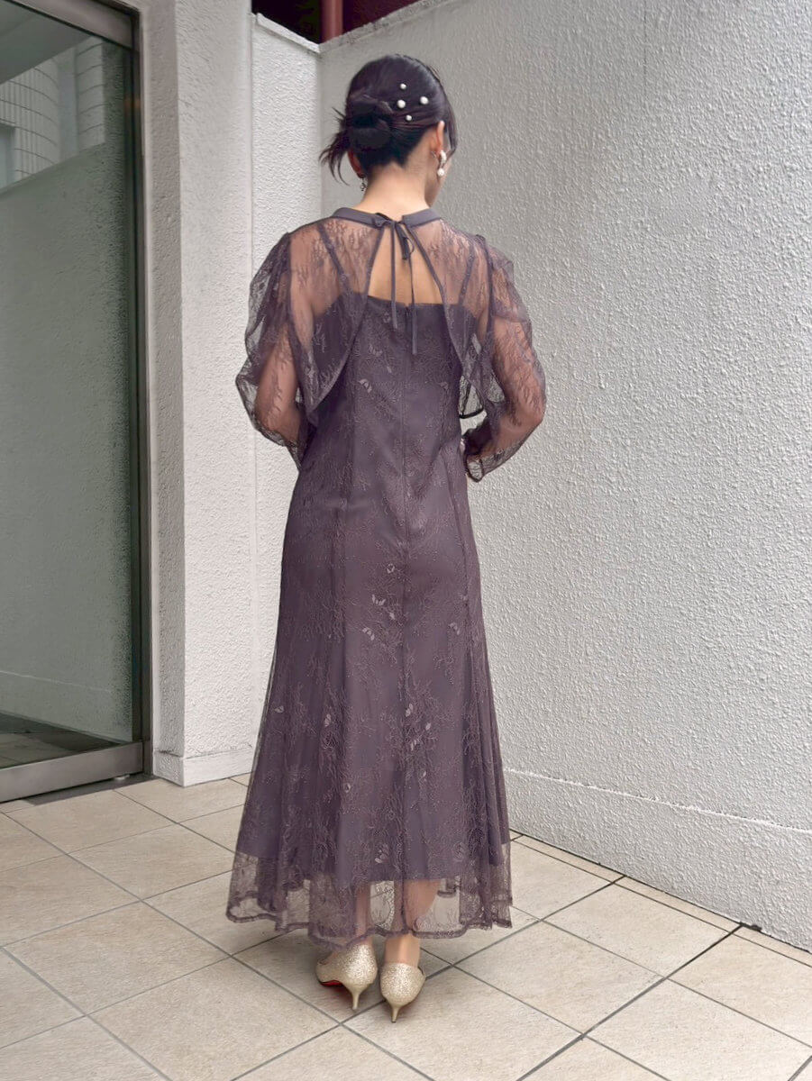 ◇商品について:総レースのキャミソールとボレロのセットアップドレスです。キャミソールのかた紐部分はアジャスター付きでサイズ調整ができるので身長に合わせてご着用頂けます。ボレロは前後どちらでも着用が可能です。ハイウエストにすっきり見せたい方は前でリボンを背中の露出をカバーしたい方はリボンを後ろに結んでご利用ください。キャミソールドレスはマーメイドのシルエットで程よく美しくスタイルアップ効果が期待できます。
