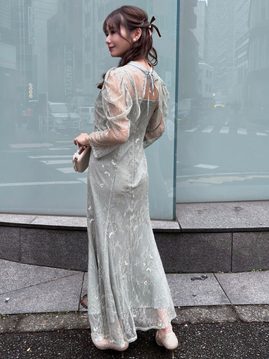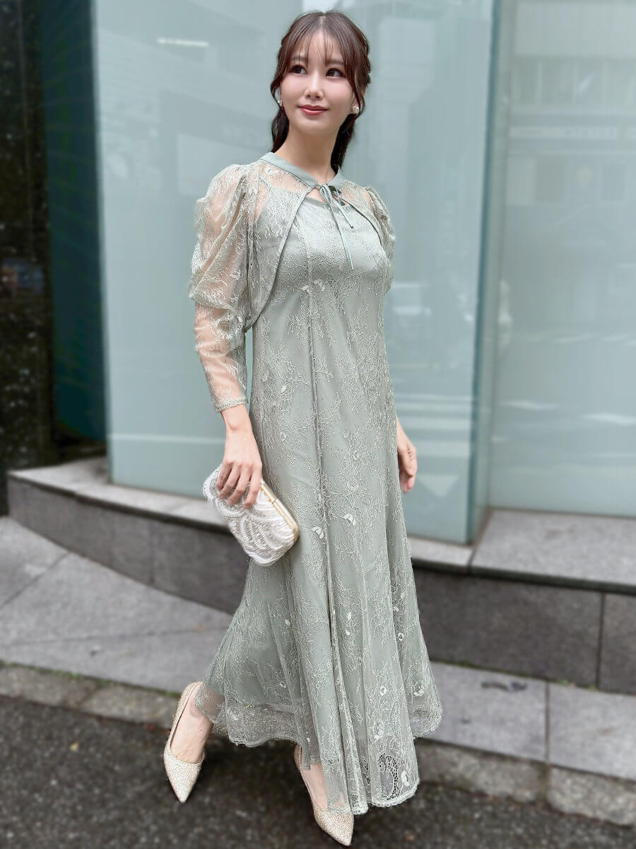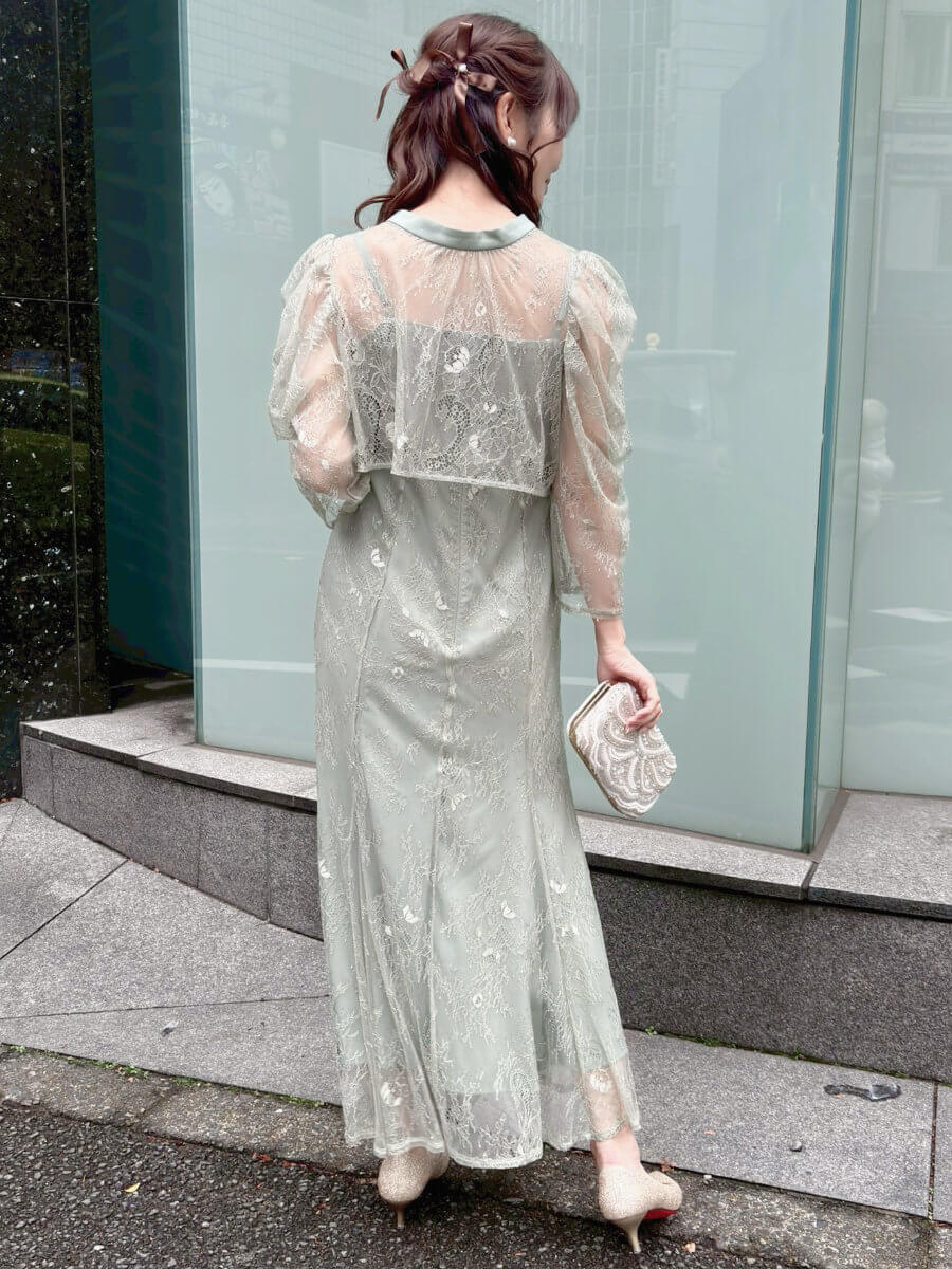 ◇商品について:総レースのキャミソールとボレロのセットアップドレスです。キャミソールのかた紐部分はアジャスター付きでサイズ調整ができるので身長に合わせてご着用頂けます。ボレロは前後どちらでも着用が可能です。ハイウエストにすっきり見せたい方は前でリボンを背中の露出をカバーしたい方はリボンを後ろに結んでご利用ください。キャミソールドレスはマーメイドのシルエットで程よく美しくスタイルアップ効果が期待できます。