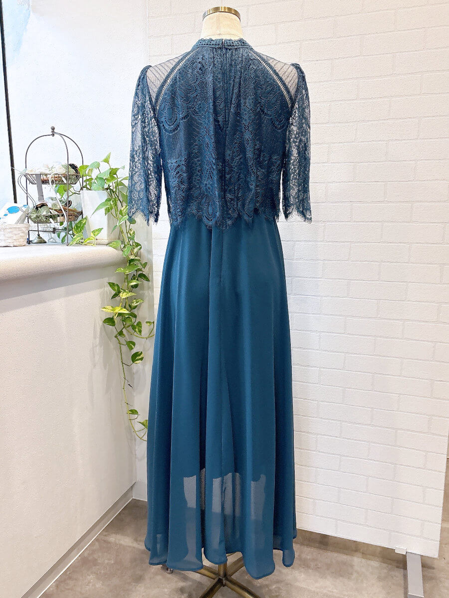 ◇商品について:スカラップレースとシフォン素材を組み合わせたエレガントなドレス。繊細なレースが上品で清楚系なイメージに。フィッシュテールドレスでフレアな裾に動きがでます。肩部分のレースに透け感がありハイネックのデザインにほどよい抜け感をプラスしています。