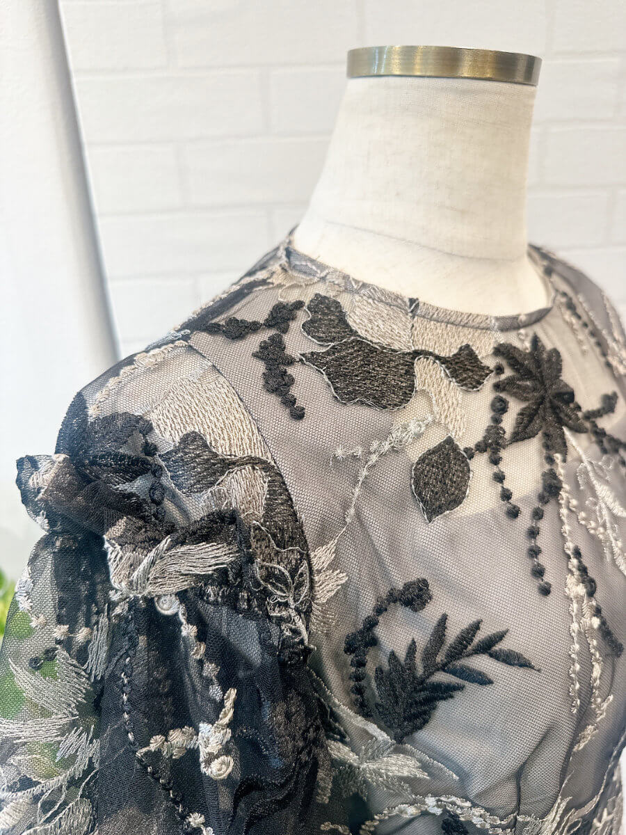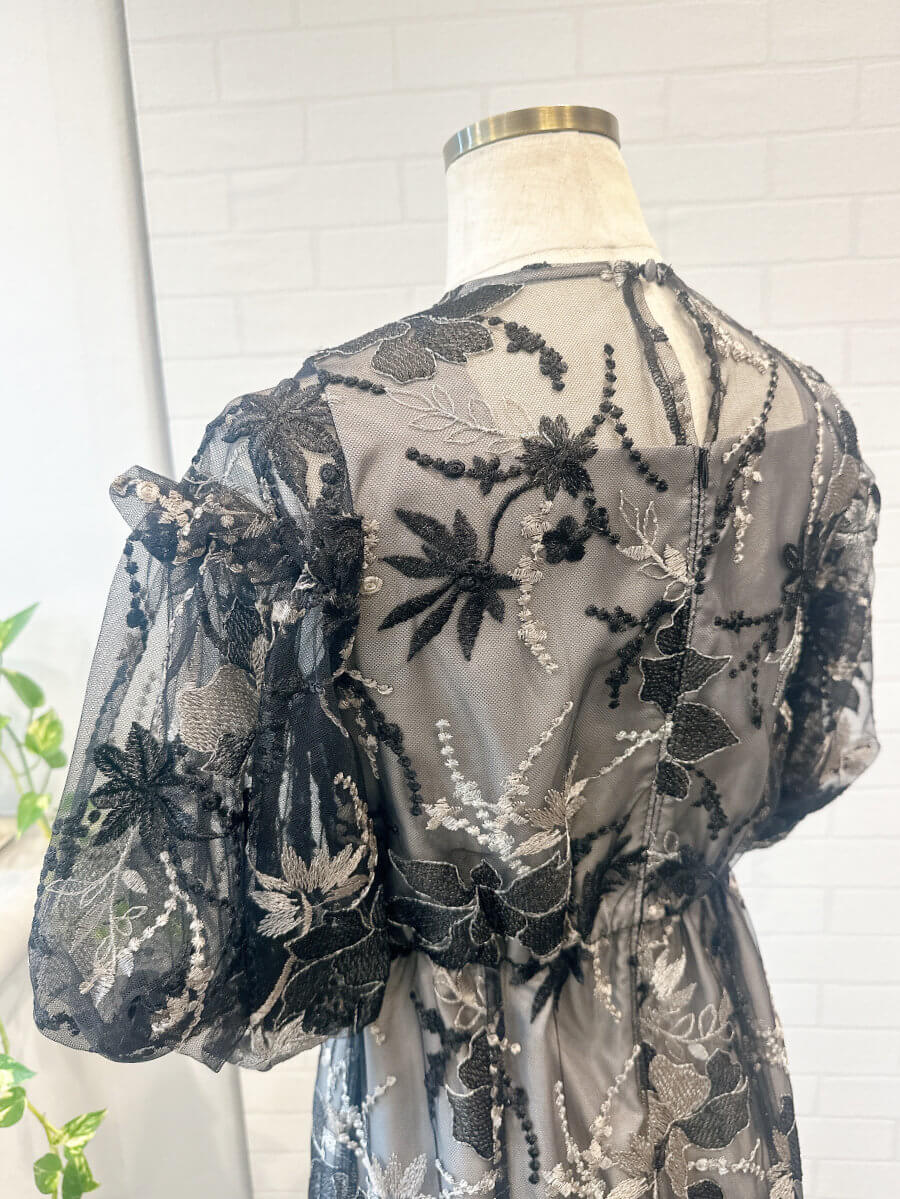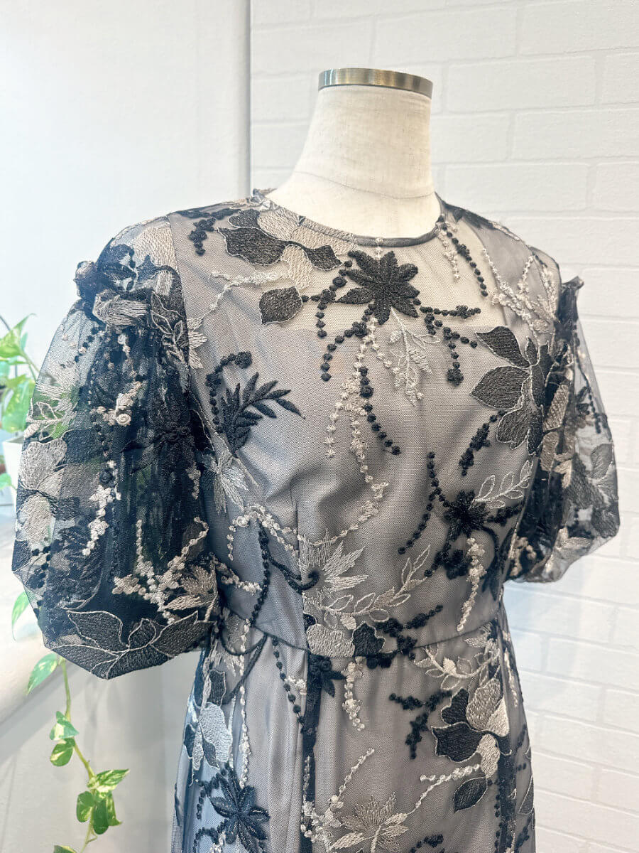 パフスリーブエンブロイダリードレス3LBK2-t