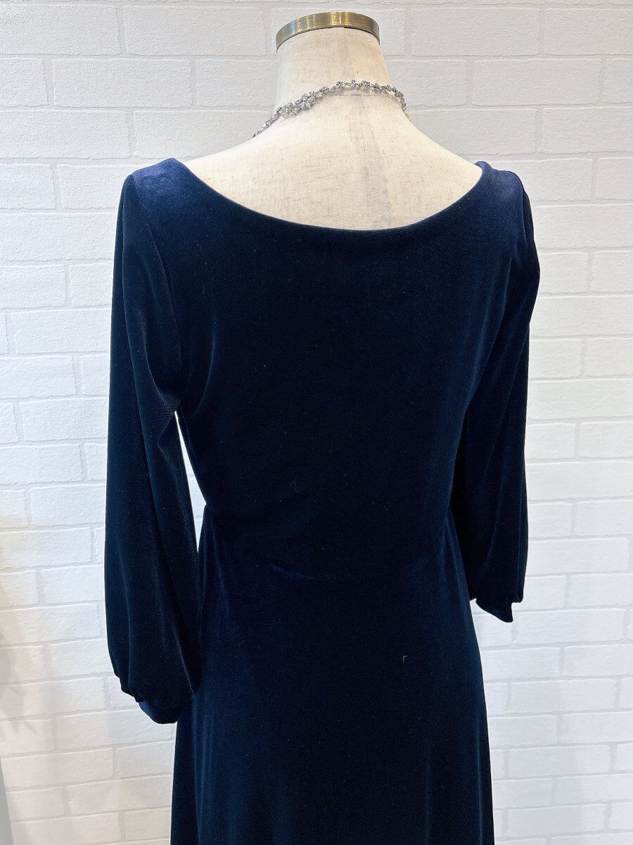 ◇商品について:高級感のあるベルベットドレス。ハイウエストなのでマタニティの方も安心して着用できるドレスです。インポートならではの胸元の開きはありますがインナーなどでご対応頂けます。上質なmade in Britainの拘りのドレスです。