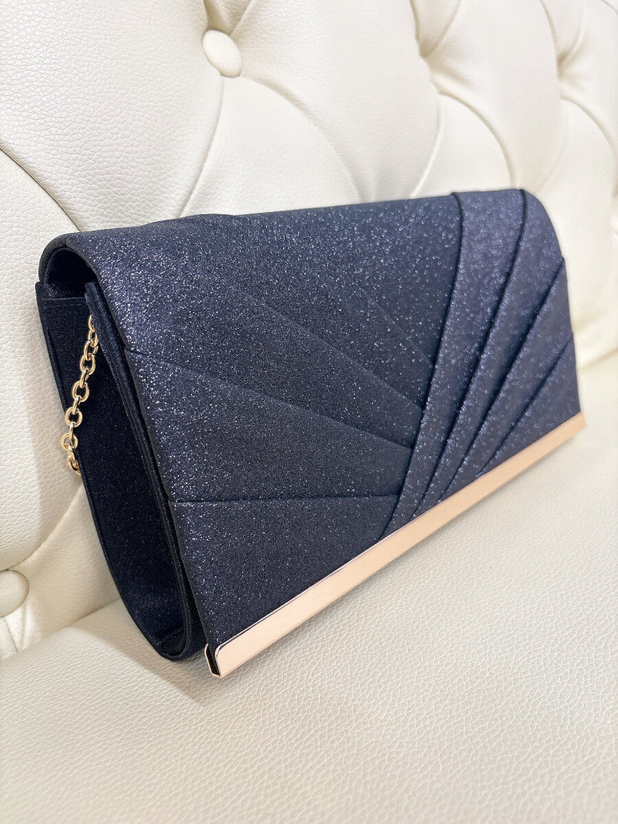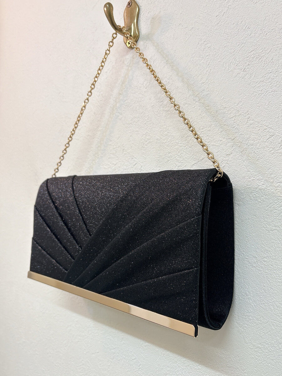 ◇カラー:ブラック ◇大きさ:横25cm/縦14cm ◇商品について:光沢のあるサテン生地にブラックのグリッターが上品で華やかなバッグです。