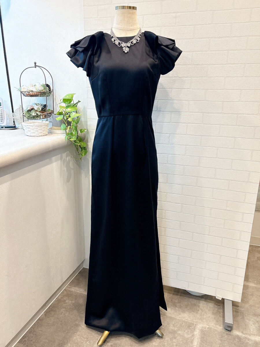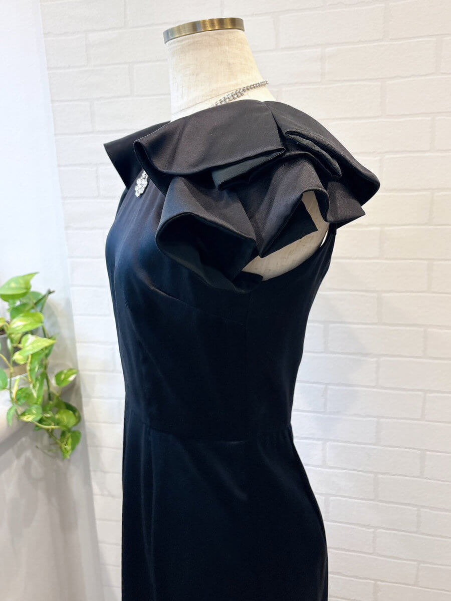◇商品について:こちらのブランドはオートクチュール商品。某有名雑誌掲載商品、女優さんがイベントでご着用された商品を特別に仕入れしております。衣装として作成されている為デザイン性抜群で誰とも被ることのない特別な一着となっております。Iラインの美しいシルエットはシンプルで上品。袖の程よいフリルがワンポイントに。サイドのスリットは程よく仕上げられており一般の方も着やすい仕様になっています。後ろはボタンで留めるため後ろ姿も上品なお品となります。