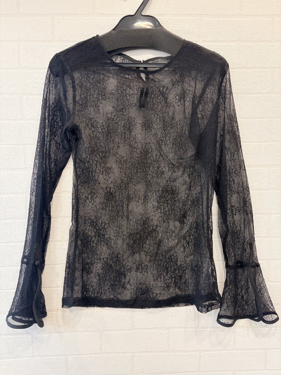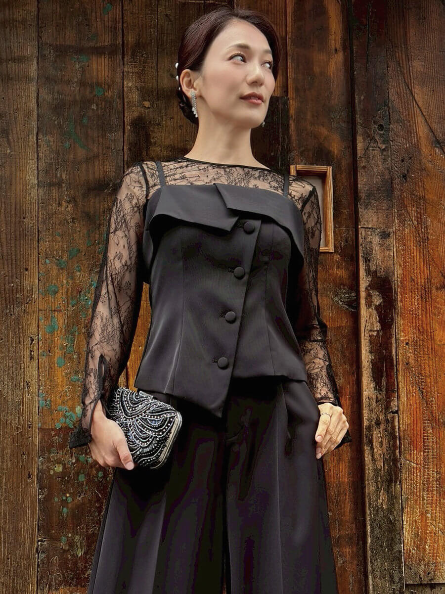 ◇カラー:ブラック◇サイズ:M ◇商品について:レースのシアーインナーです。ノースリーブのドレスと合わせたり腕回りが気になるドレスなどに合わせてアレンジできます。レース素材なので若干の伸縮性はあります。袖部分がベルスリーブになります。 ※インナーのみの商品です。