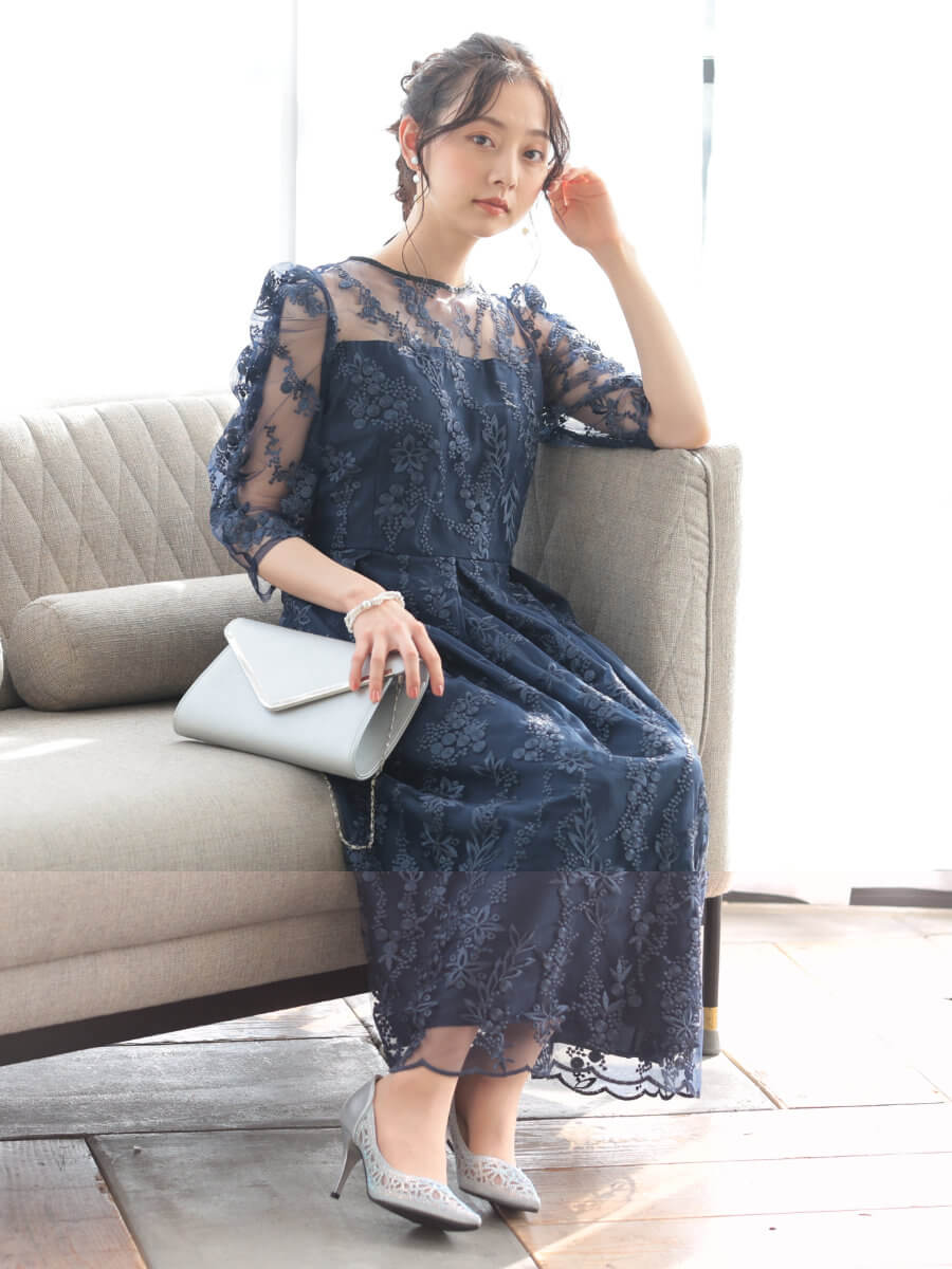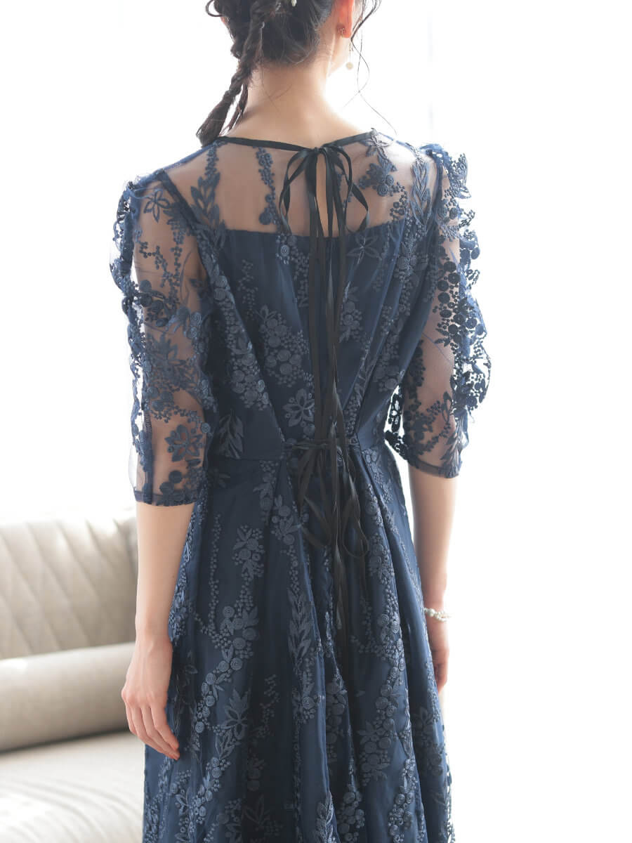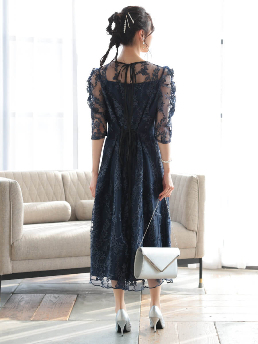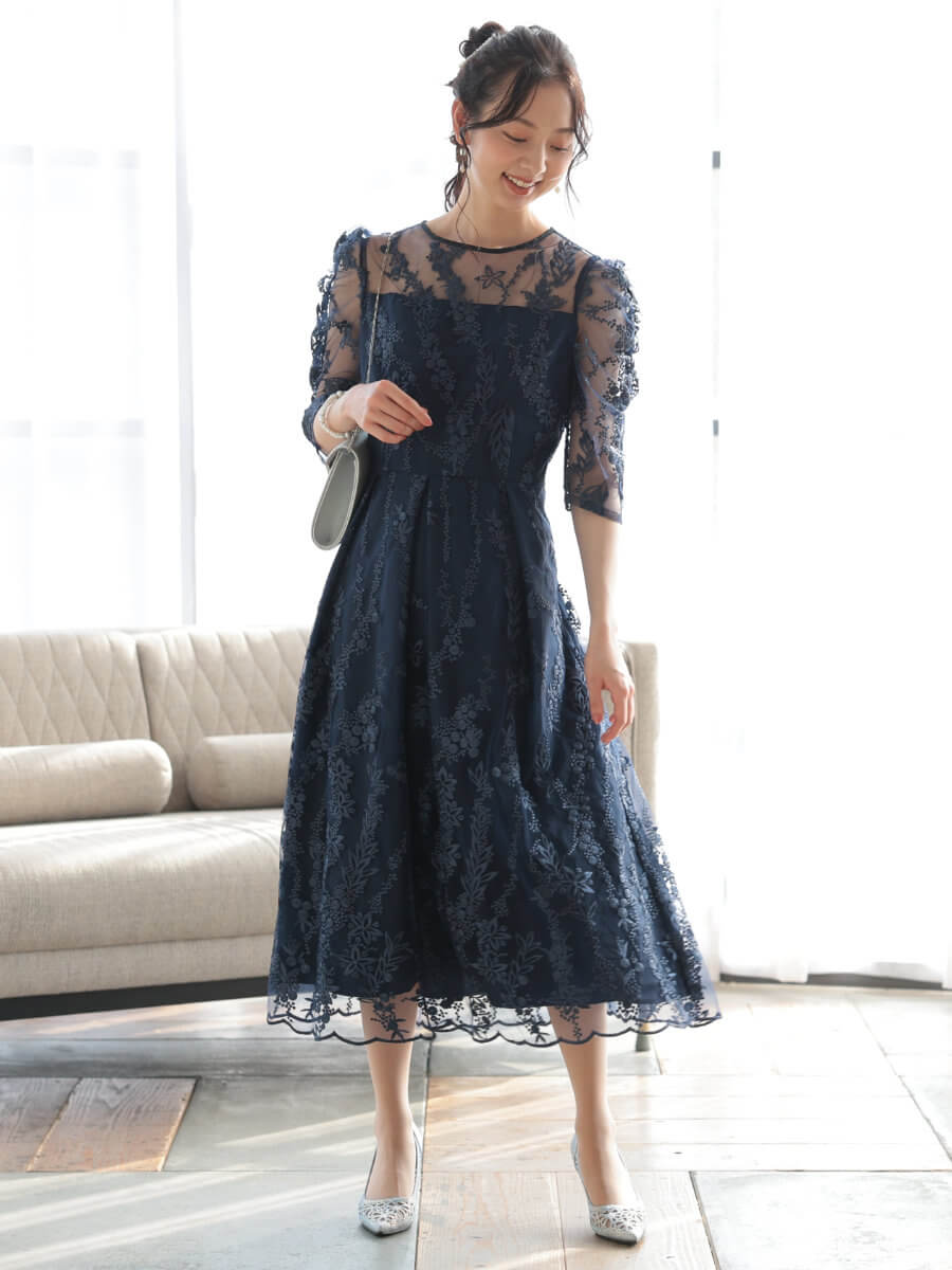 フラワー刺繍ミディドレスLnv