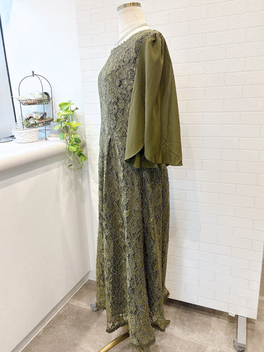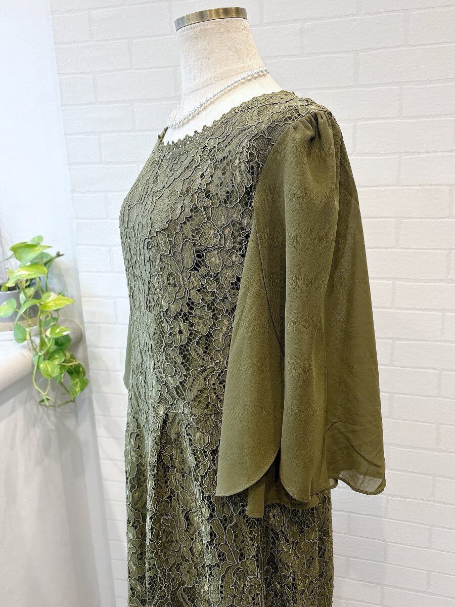 フレアシフォンスリーブレースドレスLkha3L