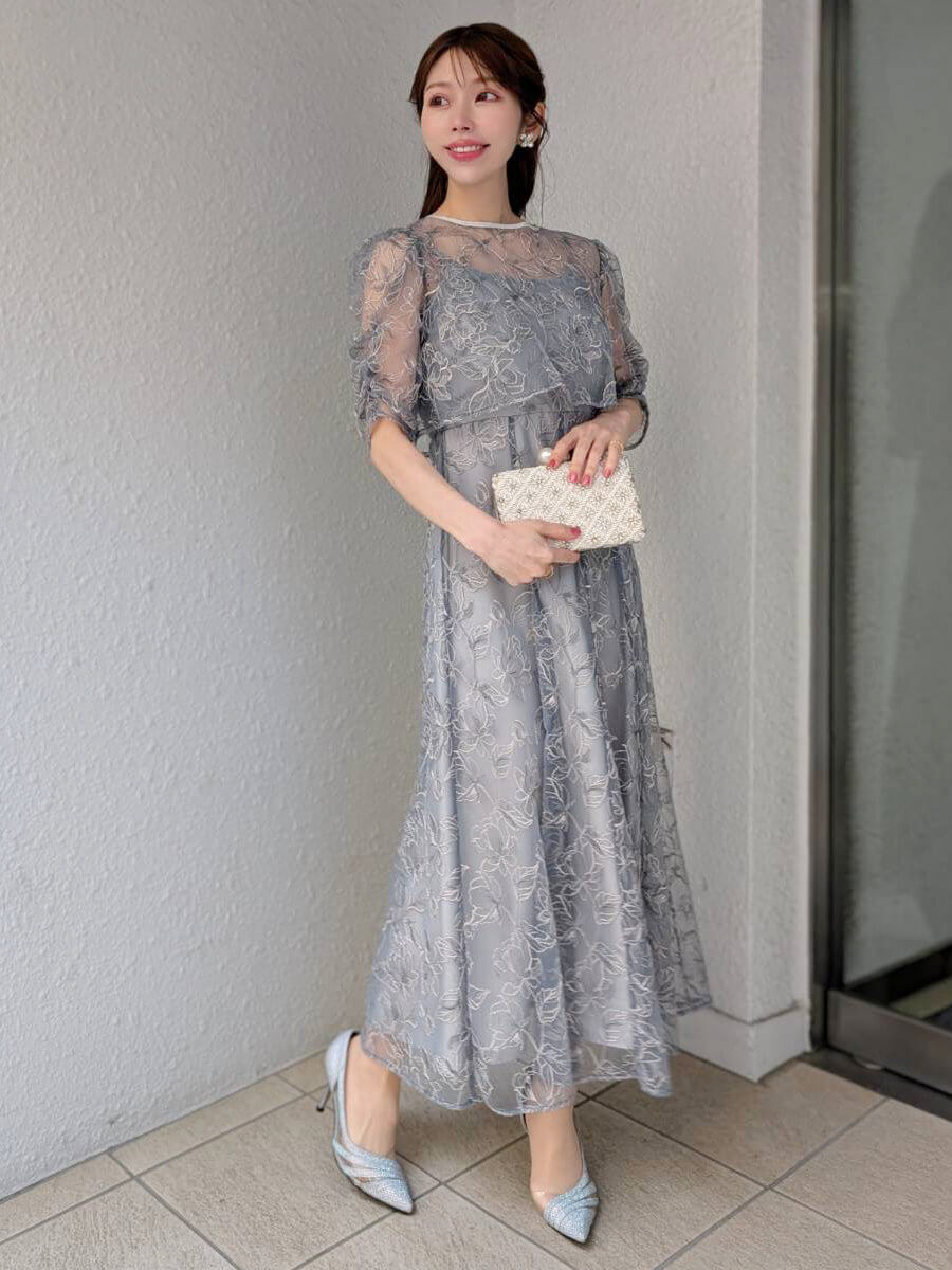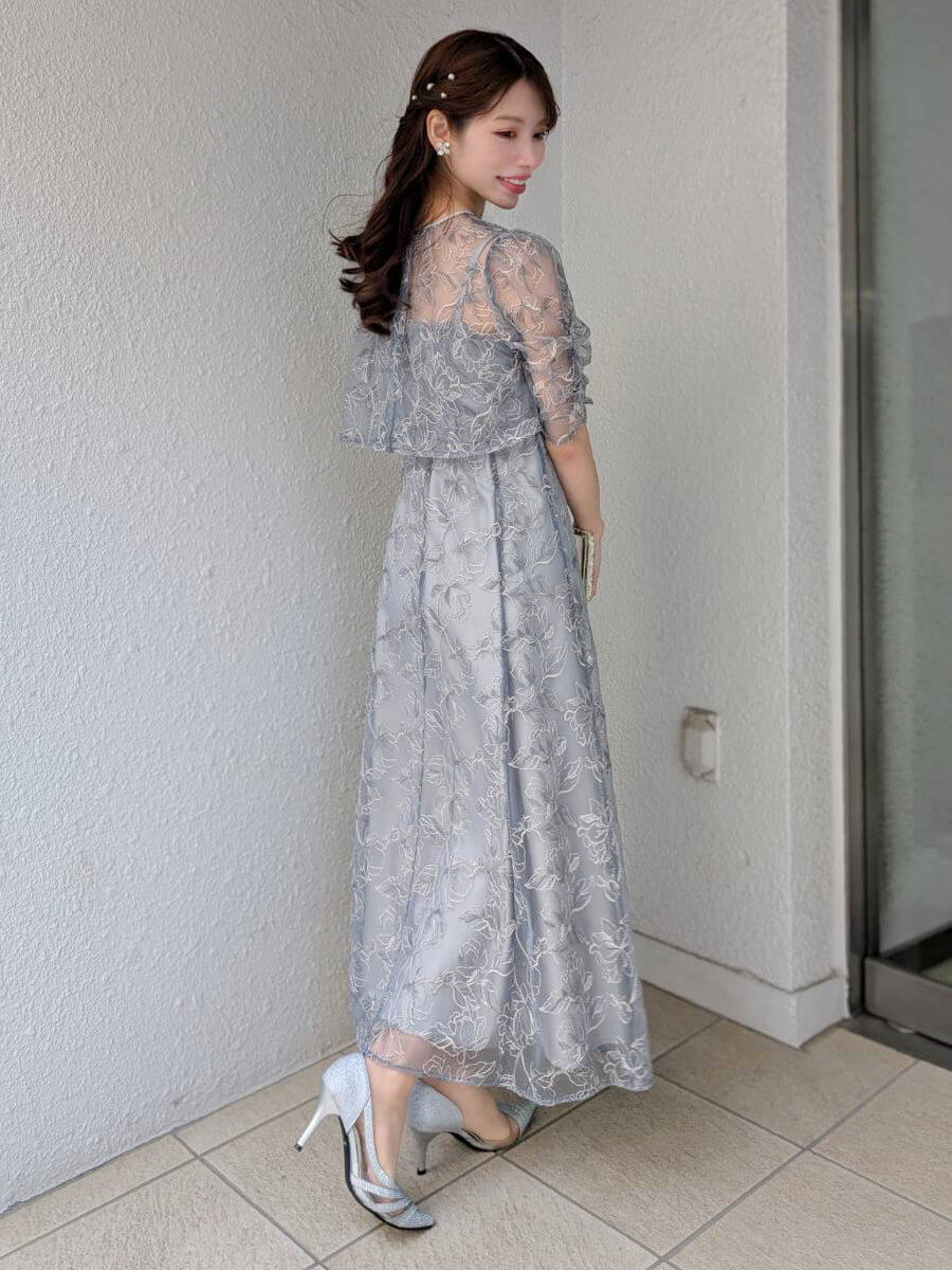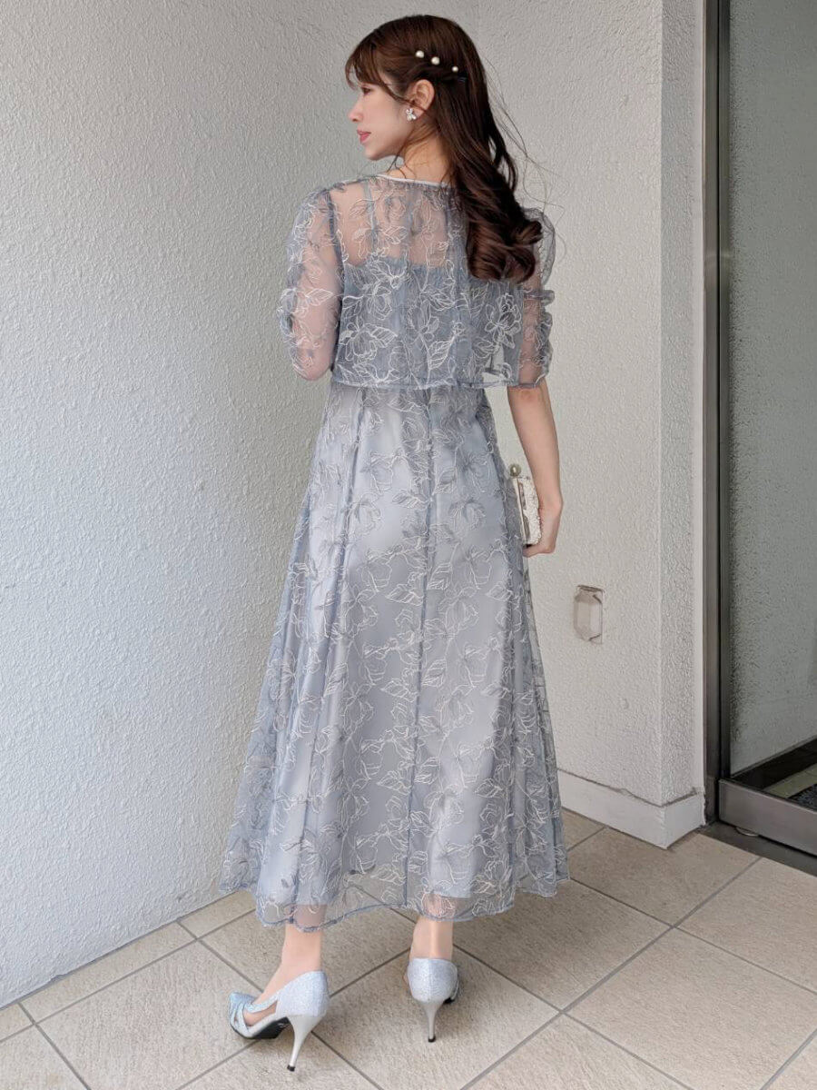 ◇商品について:花柄の刺繍レースを使用した2ピースドレス。ウエストとバスト部分は背部がゴムになっておりサイズ調整が可能。キャミソールワンピースなので肩紐で丈感の調整もできます。くすみ系のお色味で優しい雰囲気に。カシュクール袖で気になる二の腕もうまくカバーしてくれます。ハイウエストなので足長効果とお腹周りカバーもされます。可憐で上品なドレスです。