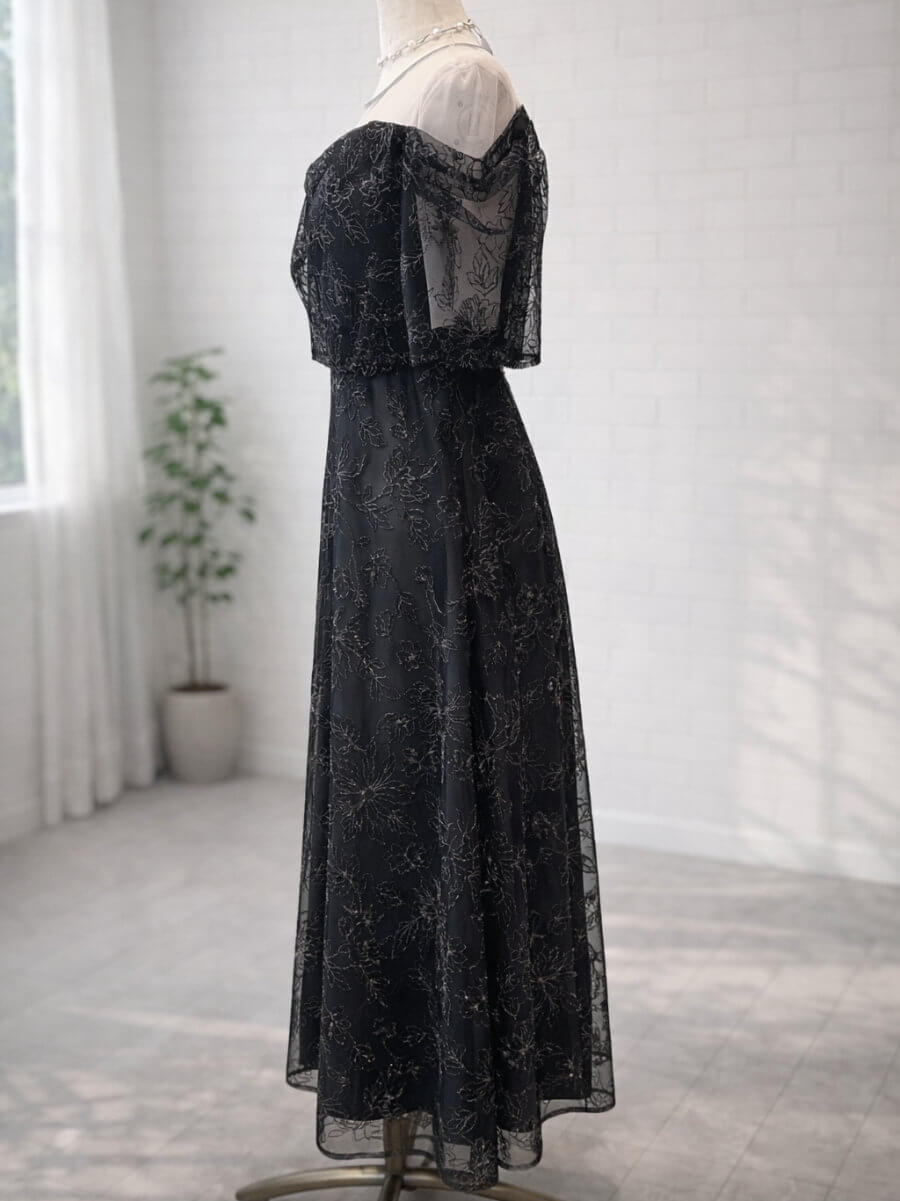 ドレープラメ刺繍ドレスLBK