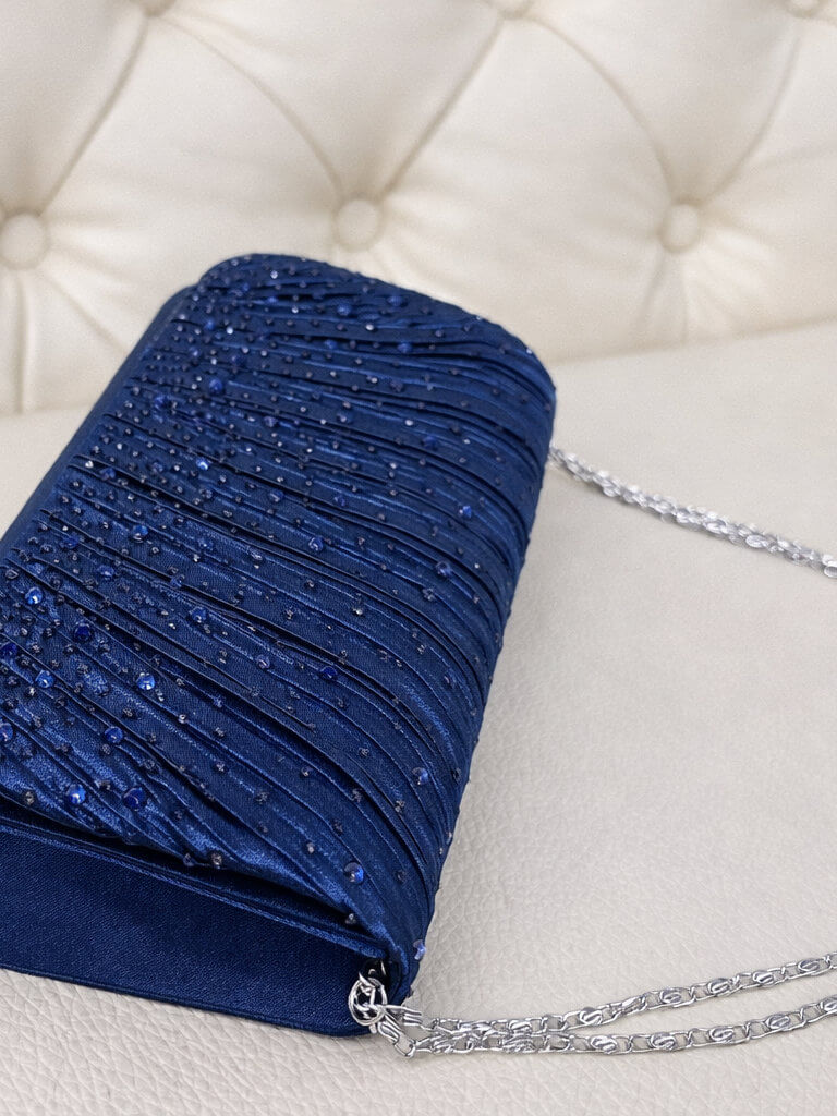 ◇カラー:ネイビー ◇大きさ:横20cm/縦12cm ◇商品について:ネイビーにネイビーのビジューがデザインされた。小ぶりで上品なバッグです。