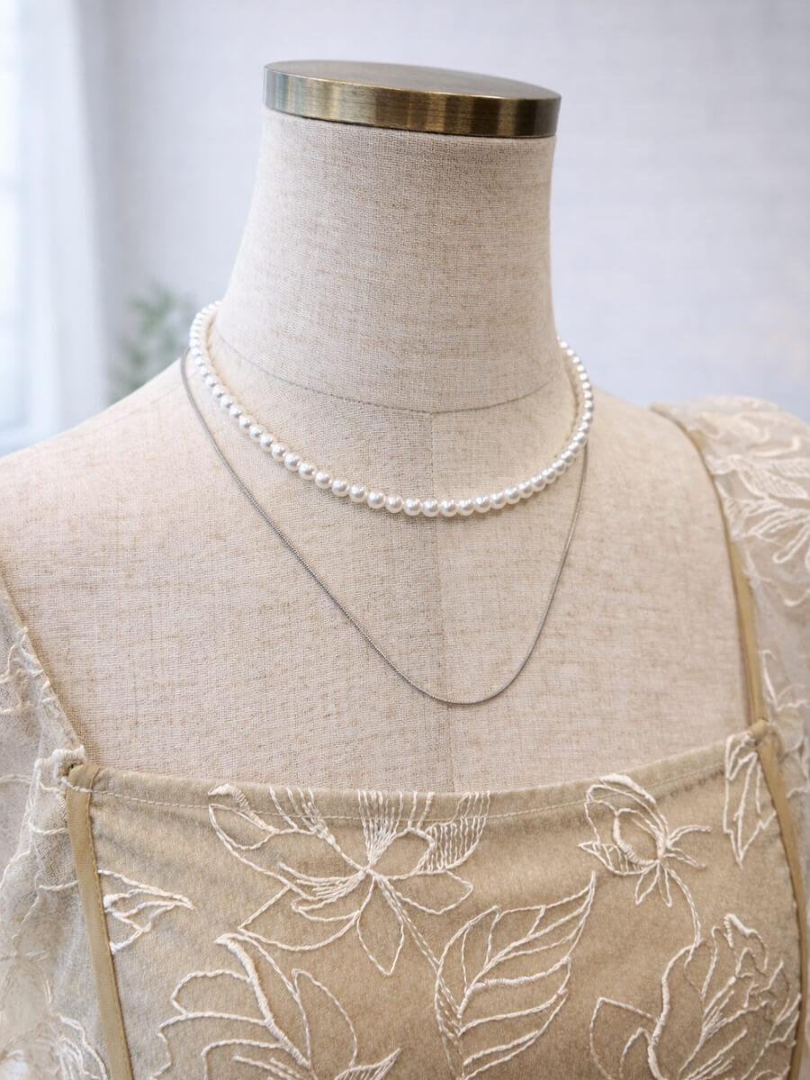 ◇カラー:シルバー ◇商品について:つけ方色々遊べるマルチウェイのネックレスです。ドレスの形やTPOに合わせて5パターンに形状を変えてイメチェンができます。