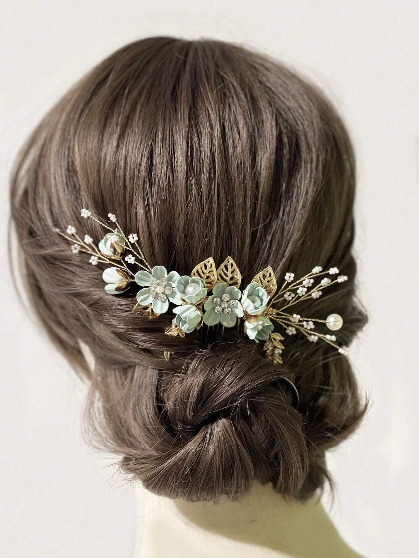 ミントグリーンのお花のヘッドアクセサリー