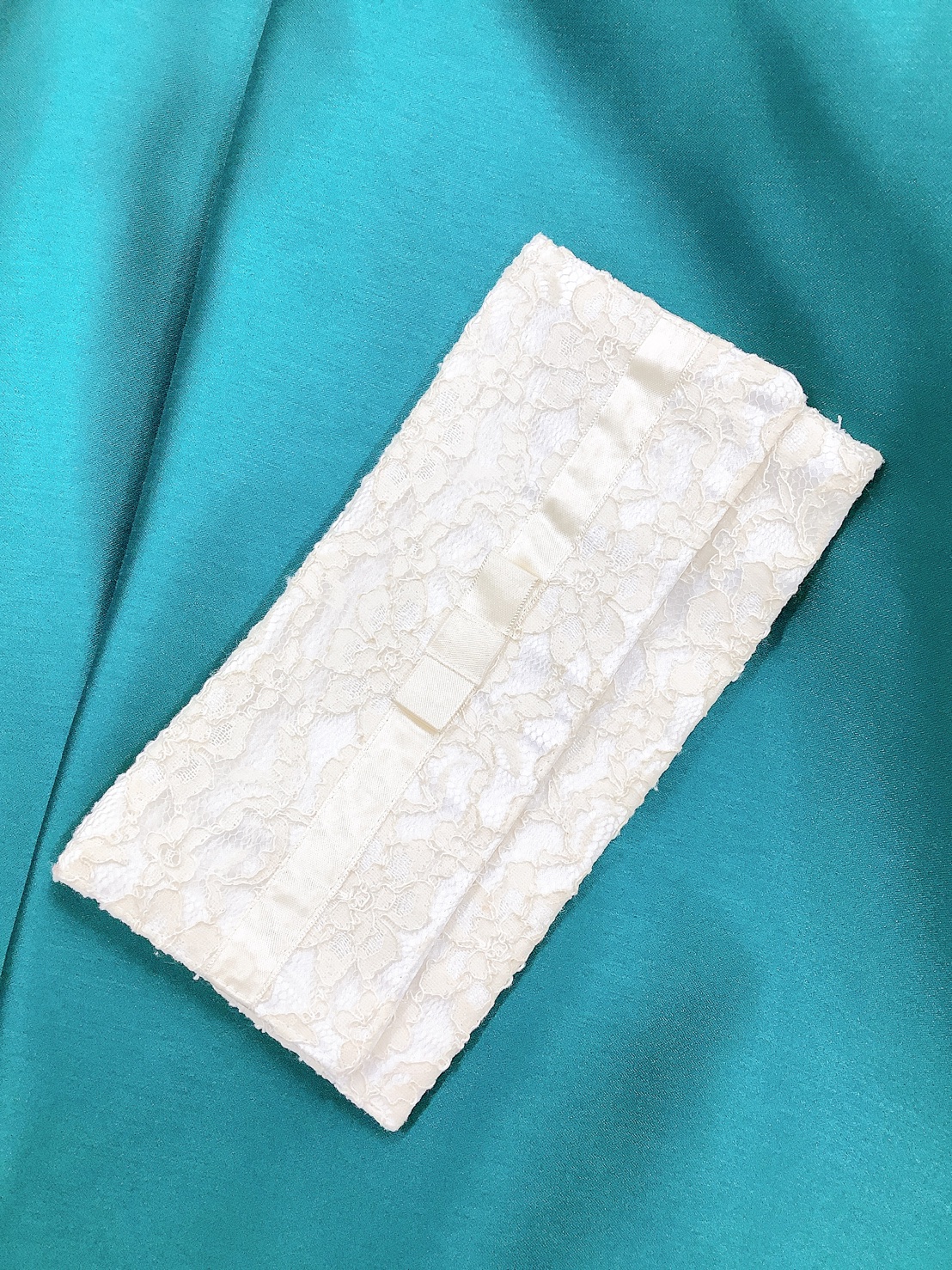 白の花柄レースに上品なリボン。マナー美人まちがいなし!
