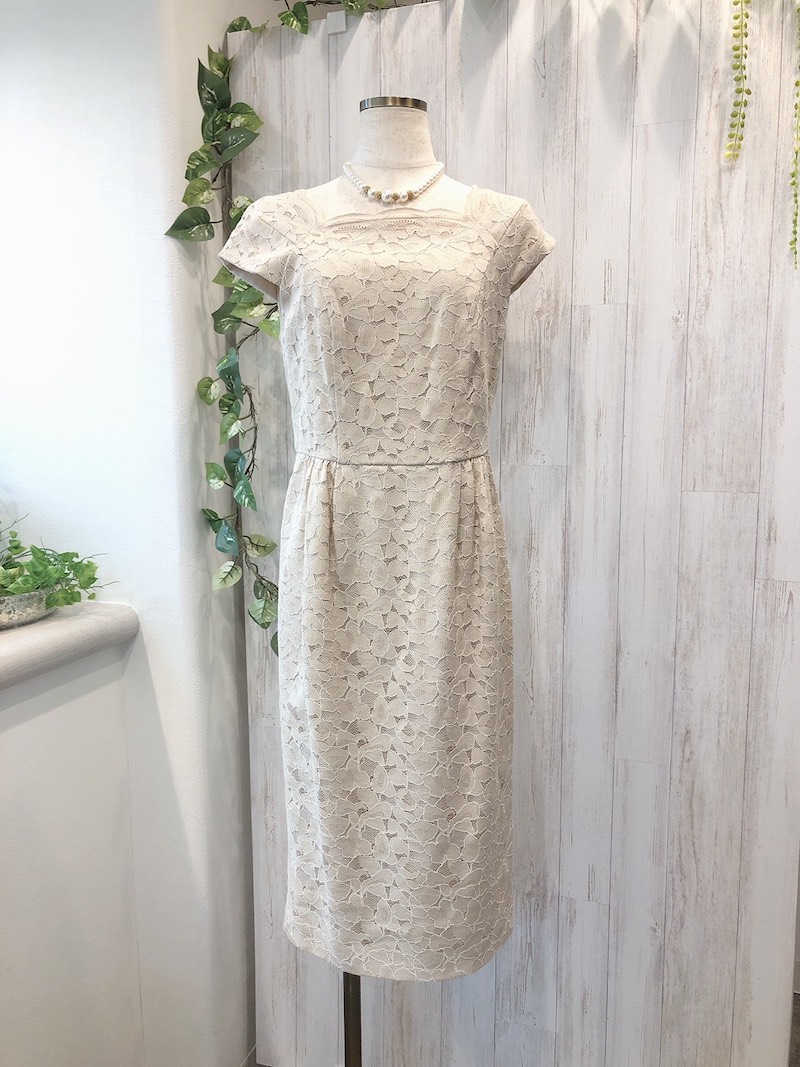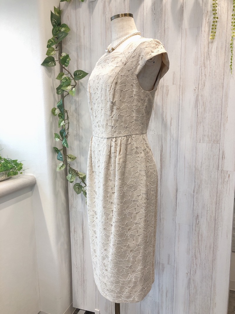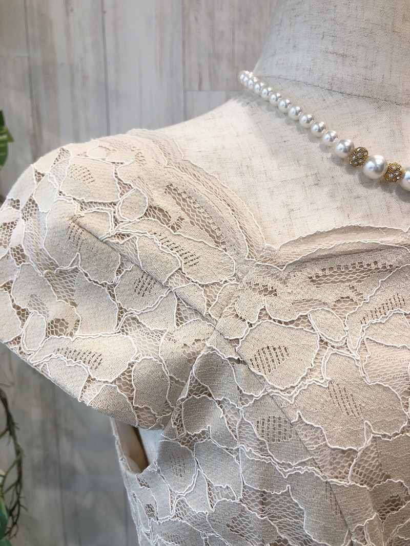 ◇商品詳細:ベージュ系のインナーの上にベージュのレースでデザインされているワンピースです。日本製にこだわったブランドでとても丁寧なお作りで質のいい素材を使用しています。
