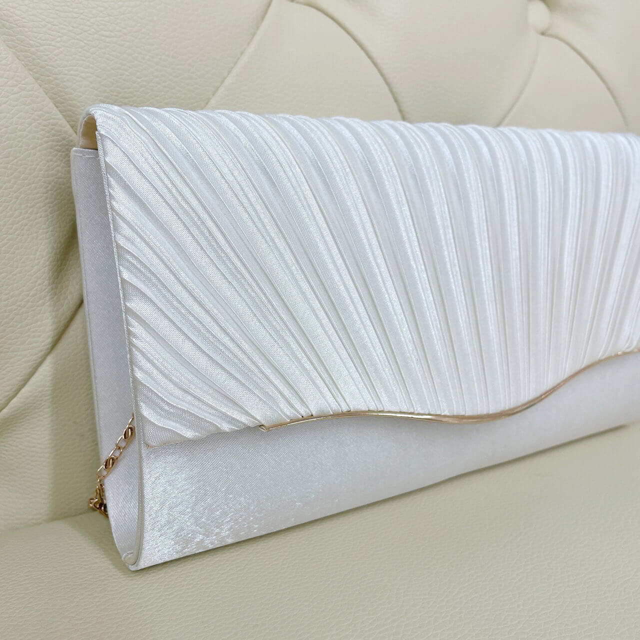 カラー:ホワイトサイズ:横25cm 縦14cm 付属品:チェーン(ゴールド) 商品について:光沢のあるお素材にゴールドのモチーフがデザインされたバッグ。シンプルで上品な商品です。