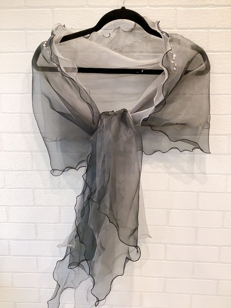 ◇カラー:ブラック×グレー ◇商品について:オーガンジー素材のダブルのショールでシンプルながら華やかになります。