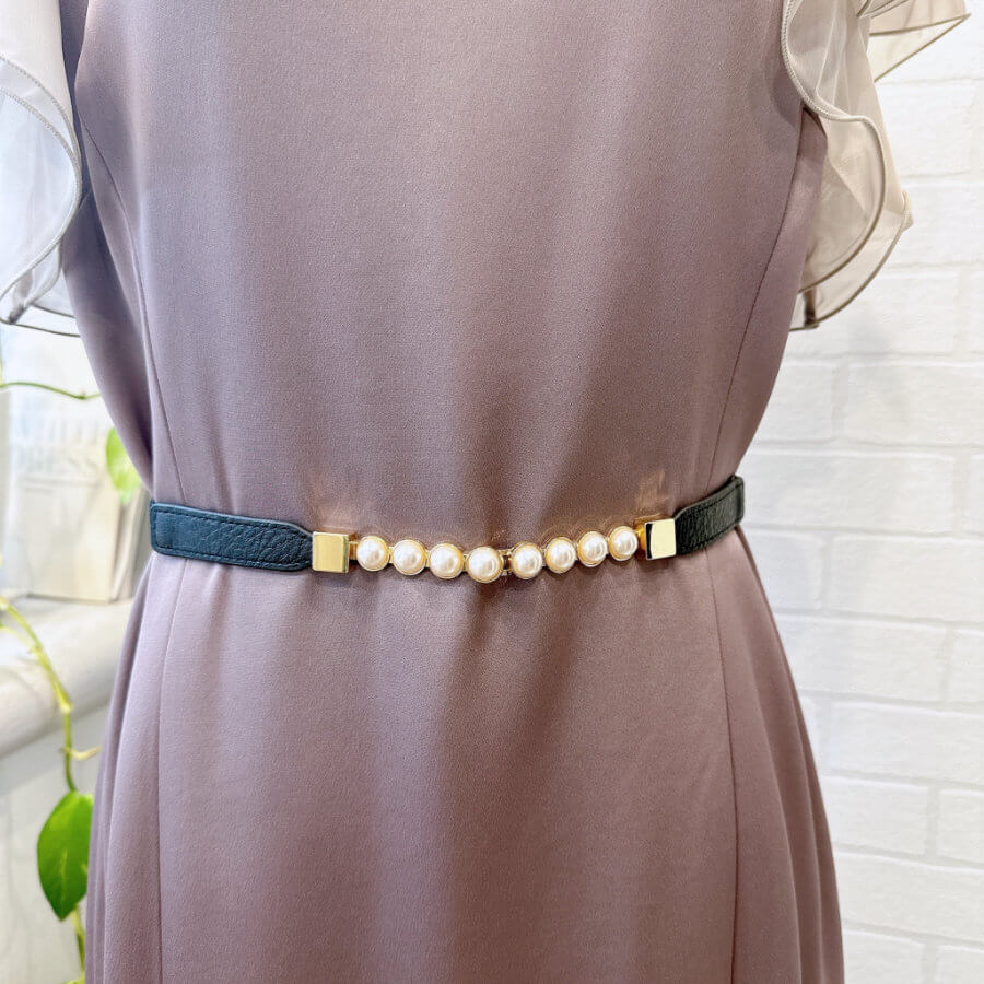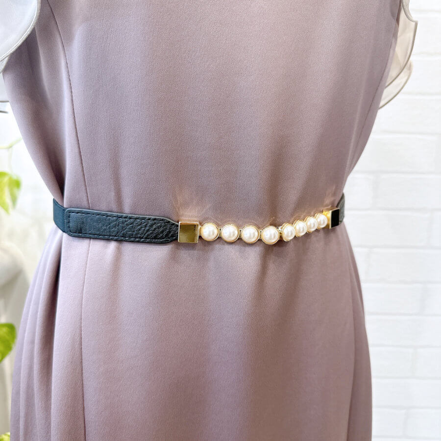 パール×ラインストーンバックルベルト ブラック ゴムなので伸縮性あり Mサイズ~2Lサイズ(66~110cm)まで対応します。