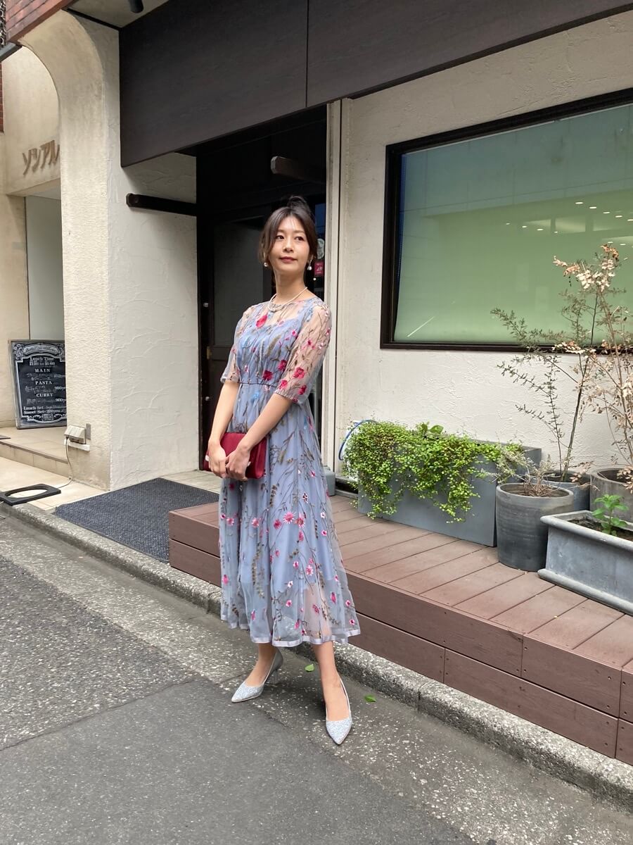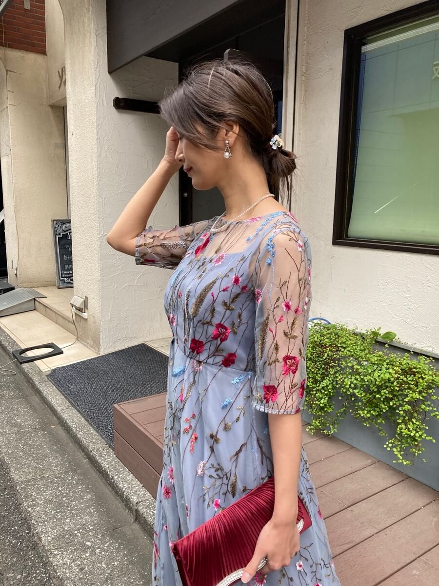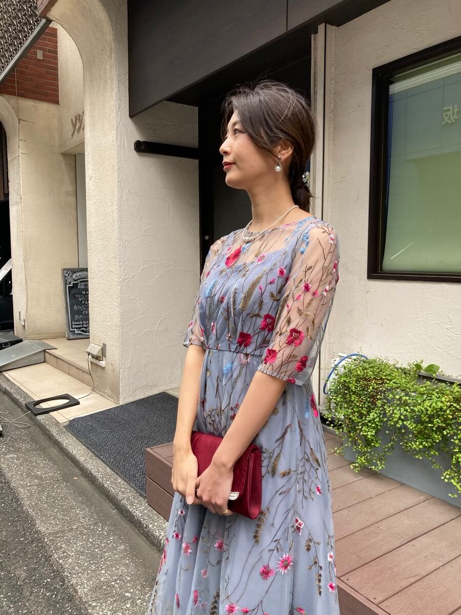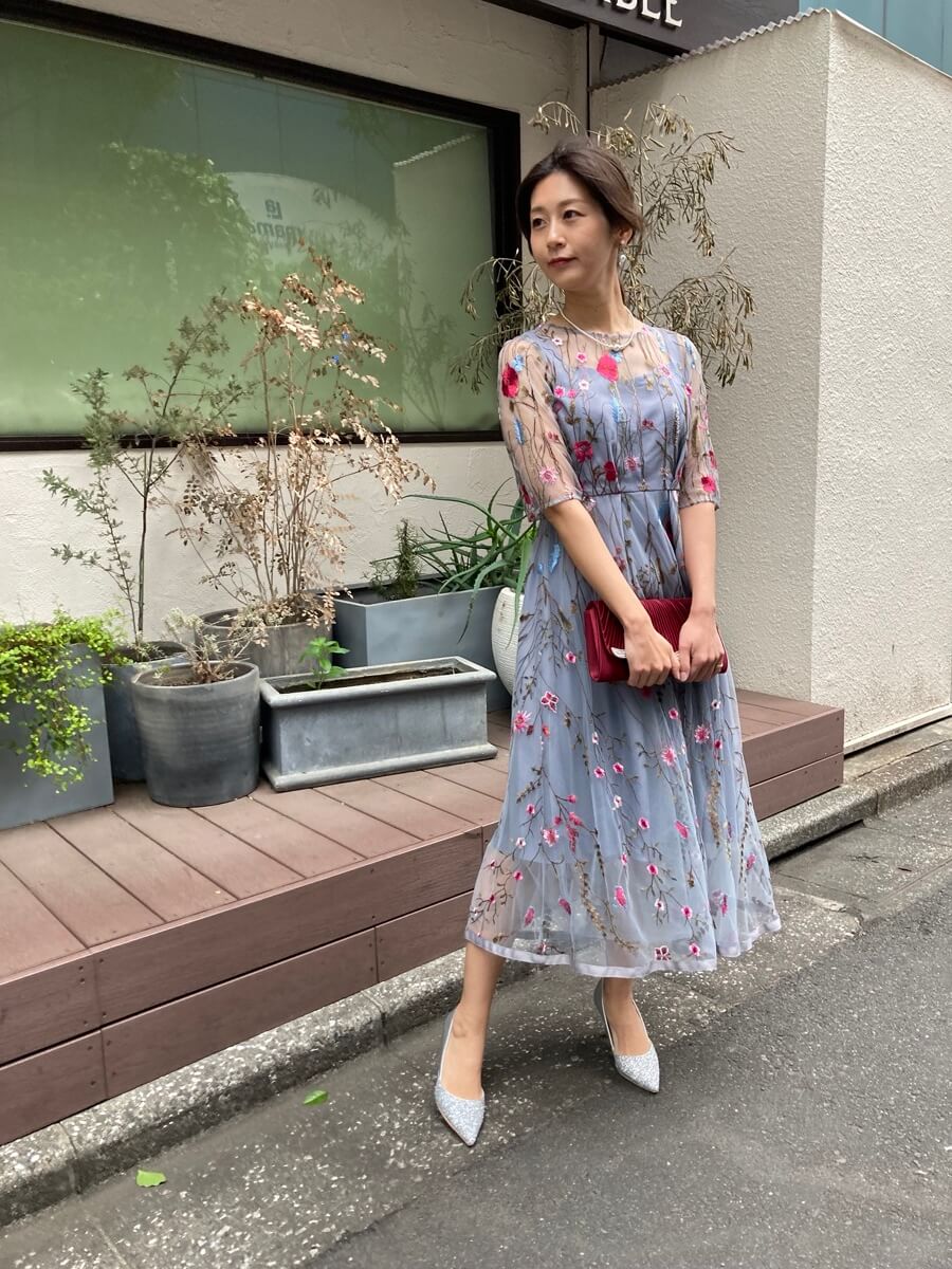 ◇カラー:ブルーグレー◇ブランドサイズ:38(9号)◇商品について:グレイッシュなブルーに色とりどりの草花の刺繍が上品でかわいいドレスです。裾部分がチュールで透け感がありそこがまた可愛いポイント。スカートの内側にチュールが入っており程よくふんわり感がでますが広がらないのでスッキリ着こなせます。ウエスト位置はハイウエストなのでお腹周りが気になりにくいシルエットです。