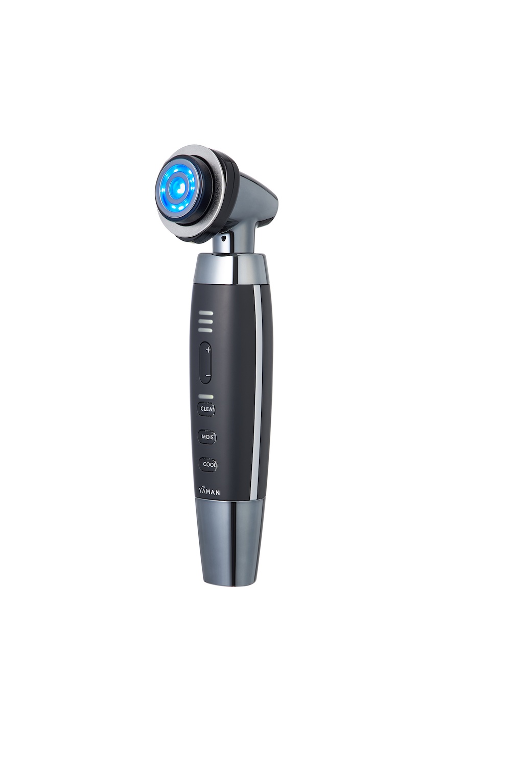 RF(ラジオ波)で肌を温めながらイオンの力で洗顔では取り切れない汚れをオフ。青色LEDによるフォトケアも同時に行います。