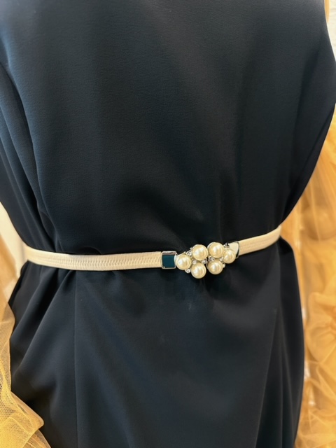 パールとビジューのチャームがワンポイント。 Sサイズベルト ◇カラー ホワイト ◇長さ 約58〜76センチまで収縮可能