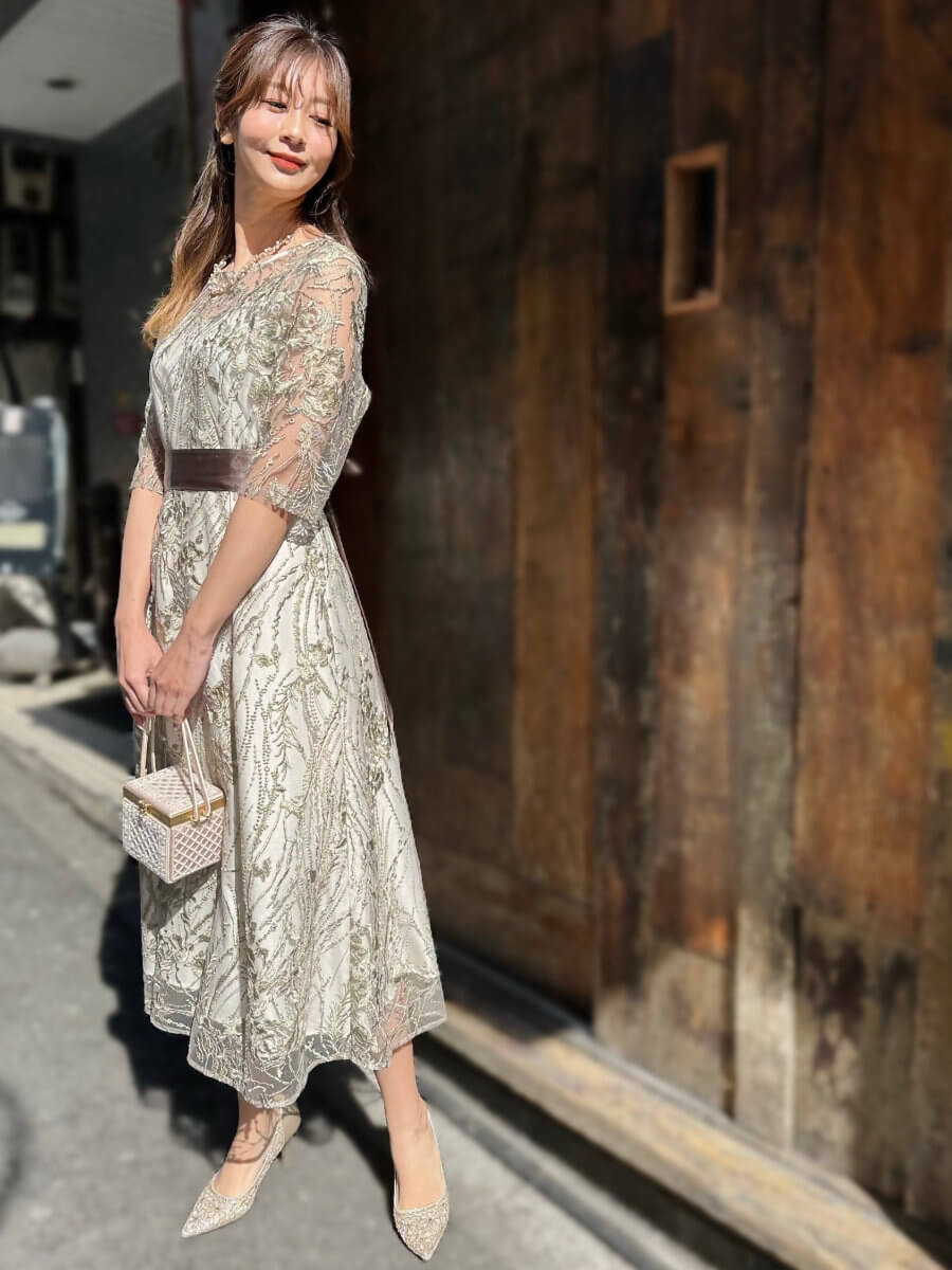 エンプロイダリーチュールドレスXLgr2