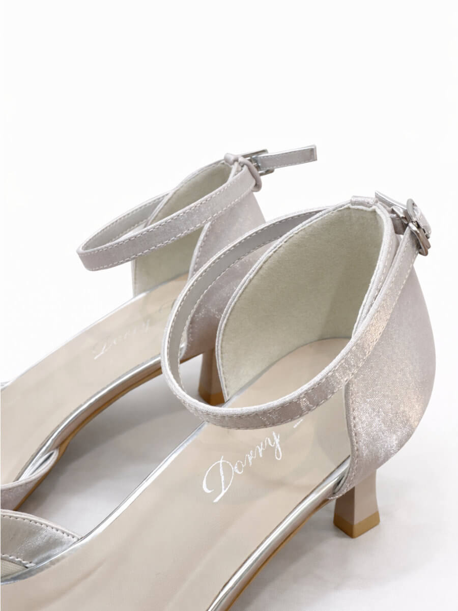 ◇カラー:シルバー ◇サイズ:S/L ※ネットでご注文の際には備考欄におサイズをご記載ください。 ◇ヒール:5cm ◇ストラップはシンプルなものとパールと付け替えが可能です。