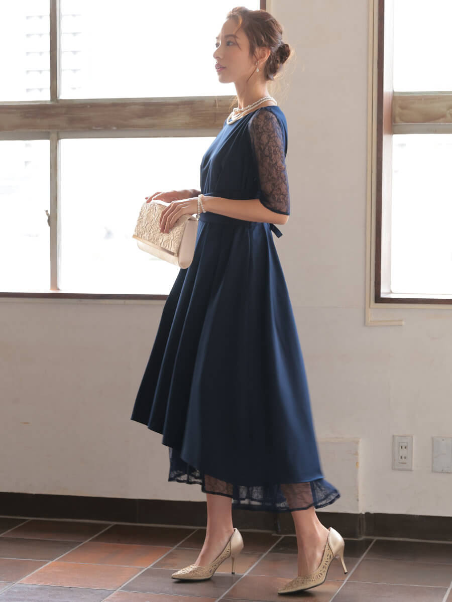 ◇カラー:ネイビー◇サイズ:11号(L)◇商品について:光沢感のある生地にレースのインナーがレイヤード。フィッシュテールのデザインで横からの姿も美しいドレスです。ウエストは太目のラインで絞られておりレースアップドレスなのでおサイズ調整もできるため、ご自身の体型に合わせて着れるドレスです。定番ドレスとして様々なシーンでご着用できます。