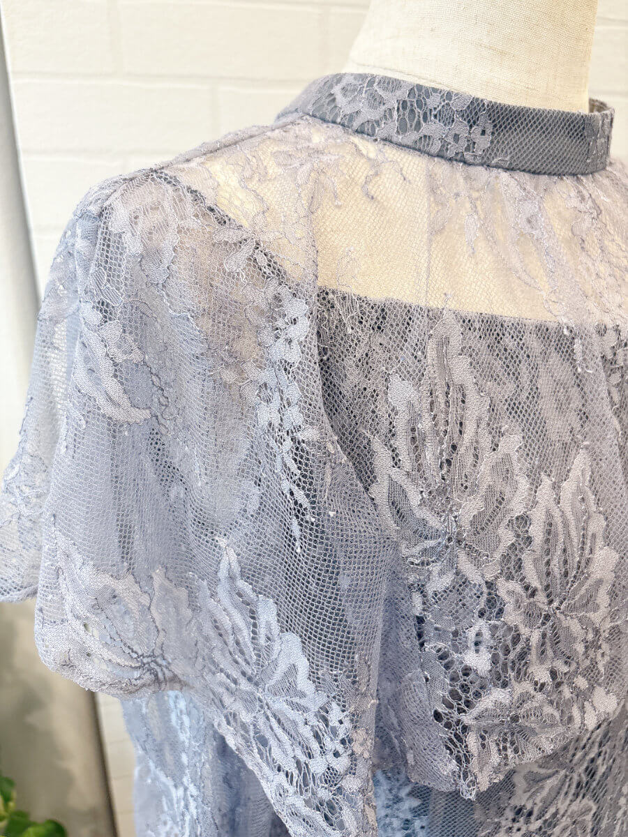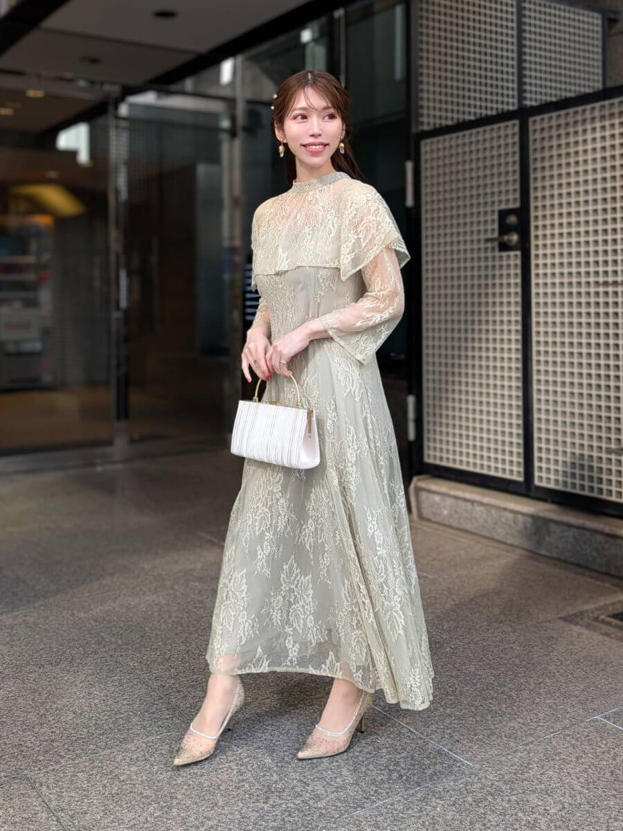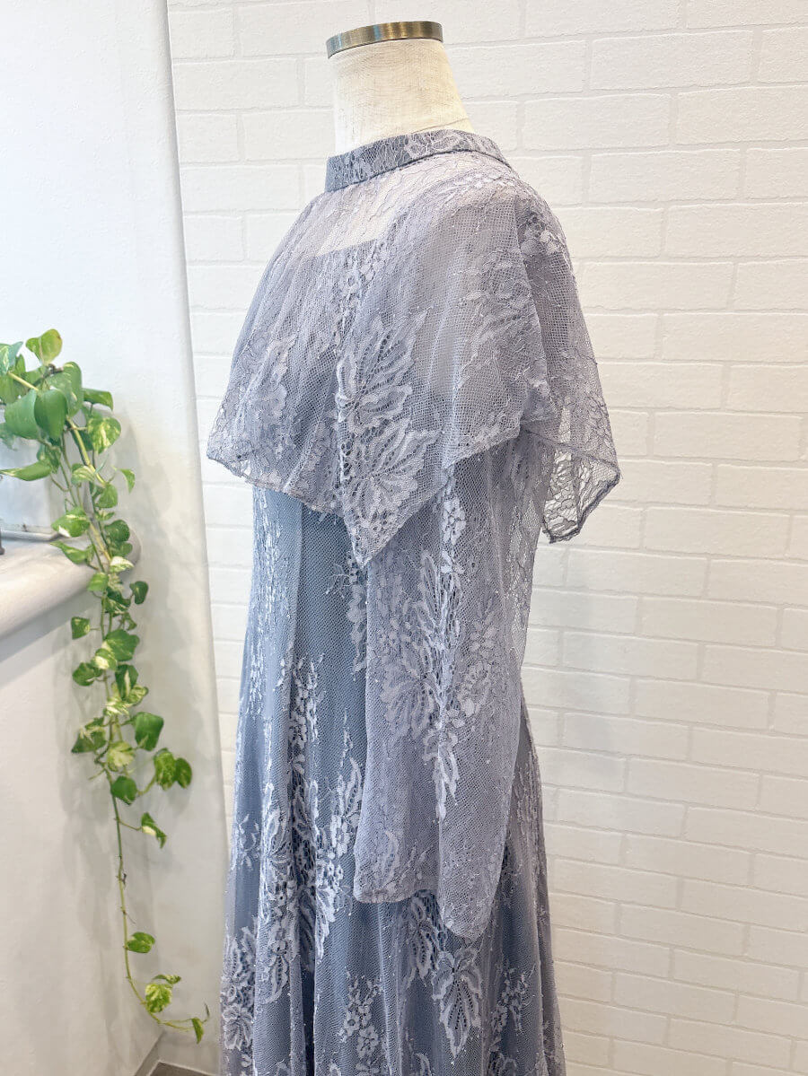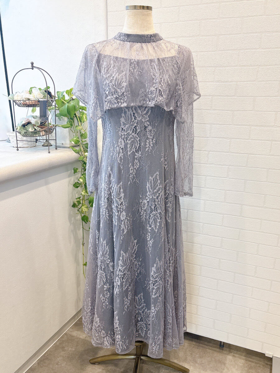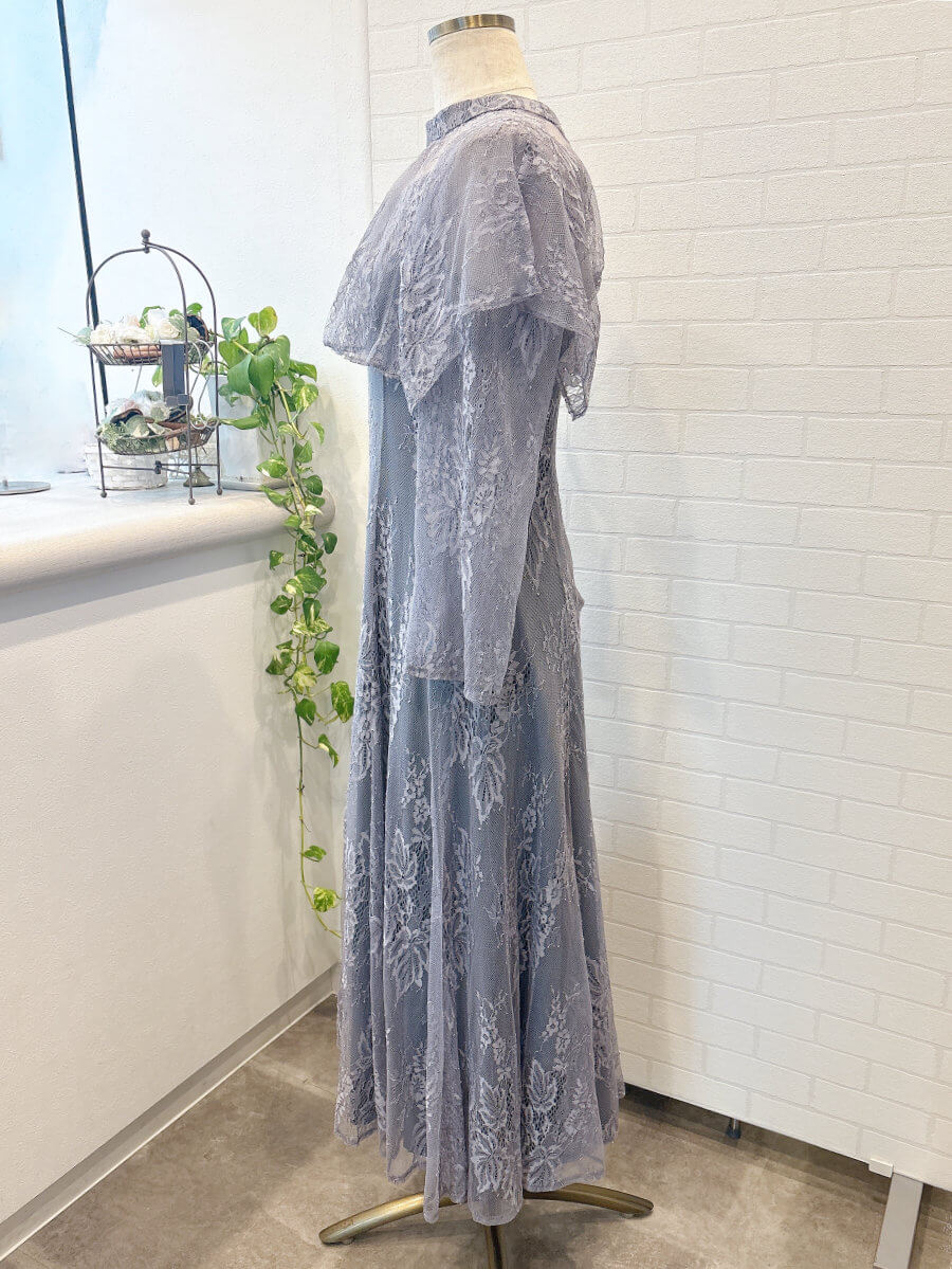 ◇商品について:ロングスリーブのレースワンピースにケープがセットアップ。すっきりシルエットから伸びる腕回りをうまくカバーしてくれます。ショート丈のボレロで足長効果がありすっきり上品に着れます。ケープのボタンはフェイクで一番上をホックで留めます。レース部分は透けますので下着にはお気を付けください。