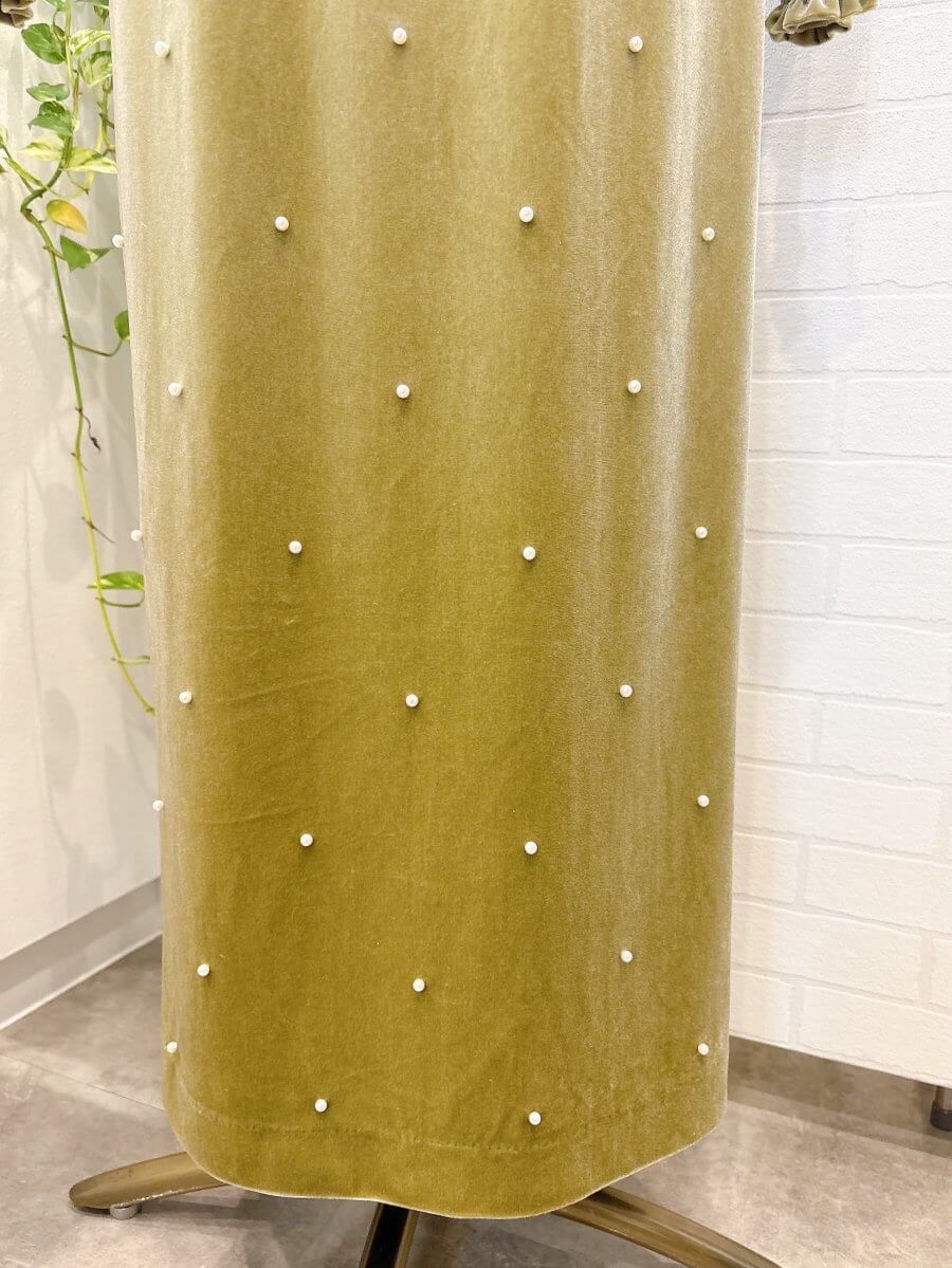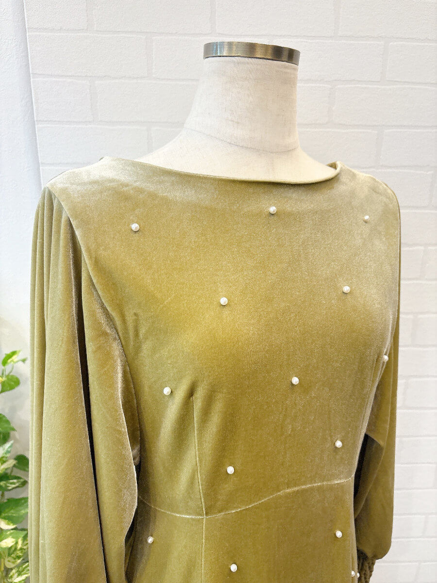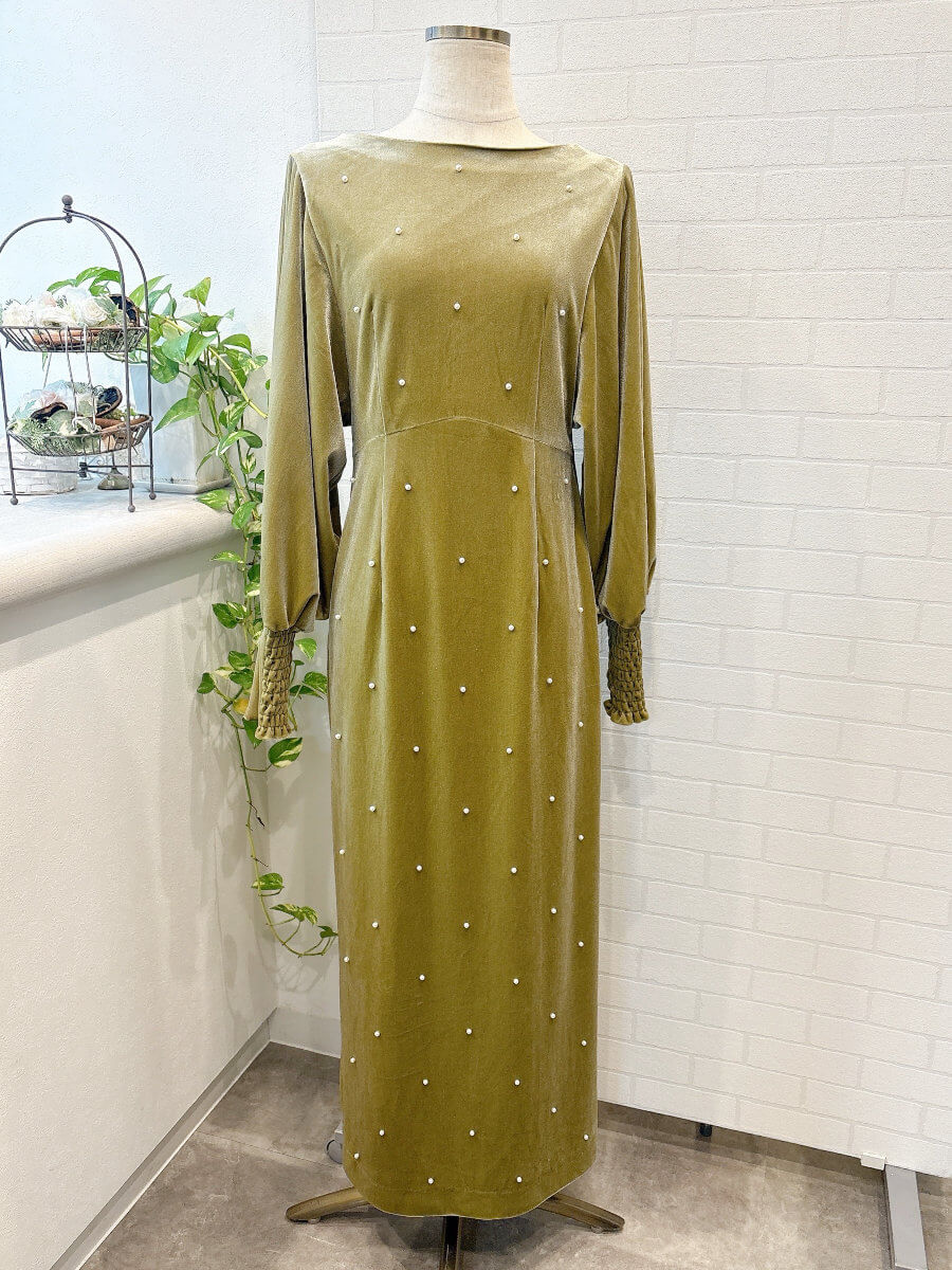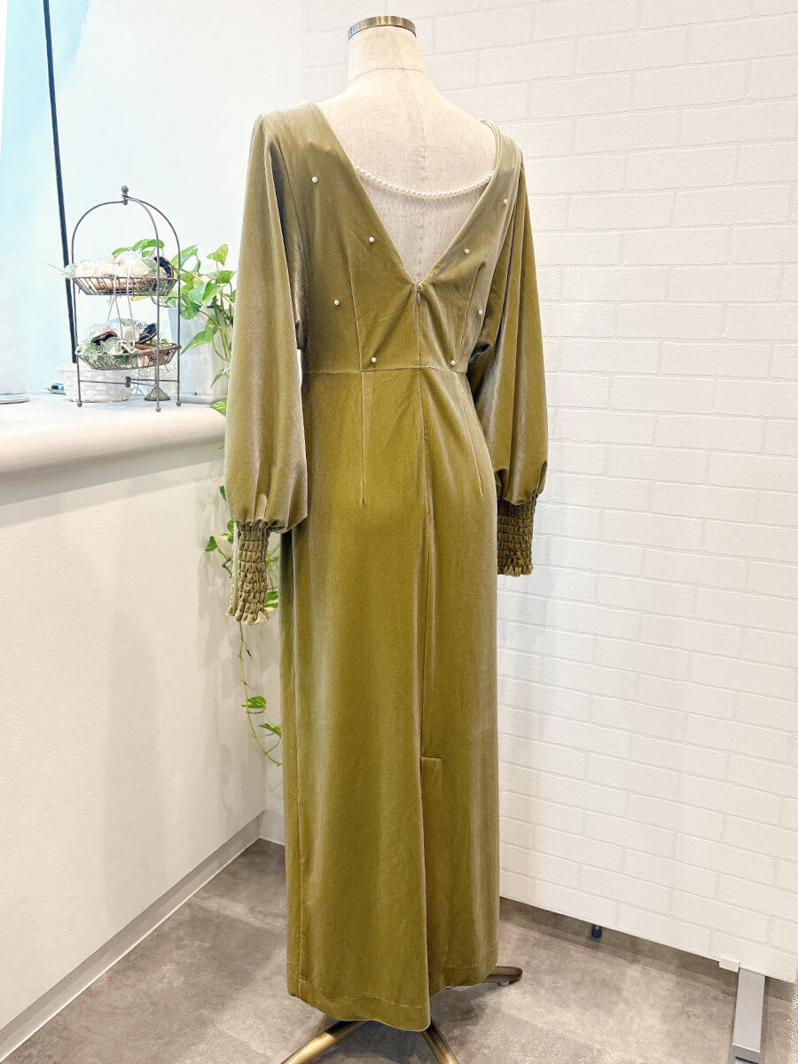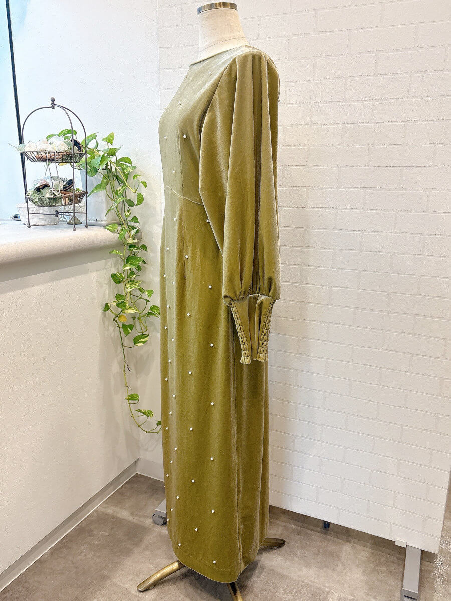 BACK OPEN PEARL VELOUR DRESS Sピスタチオ