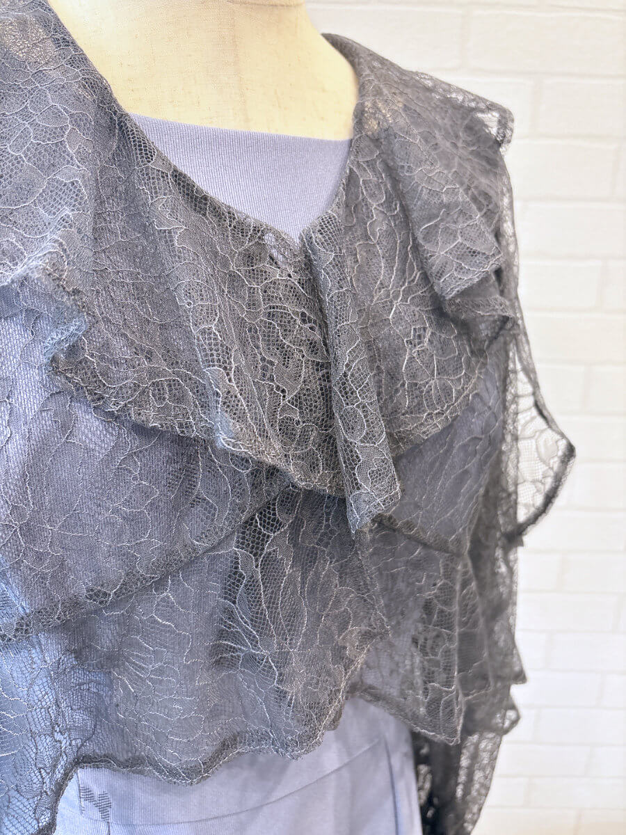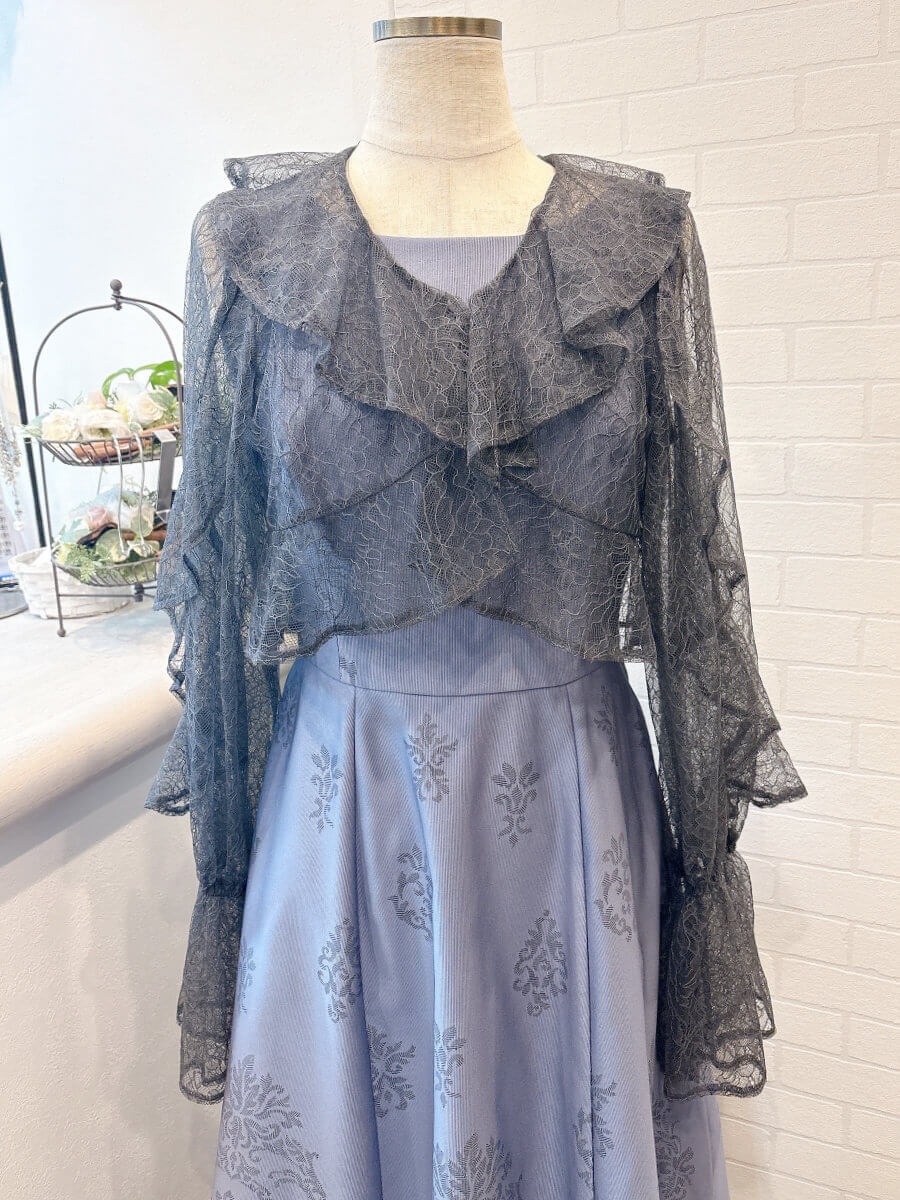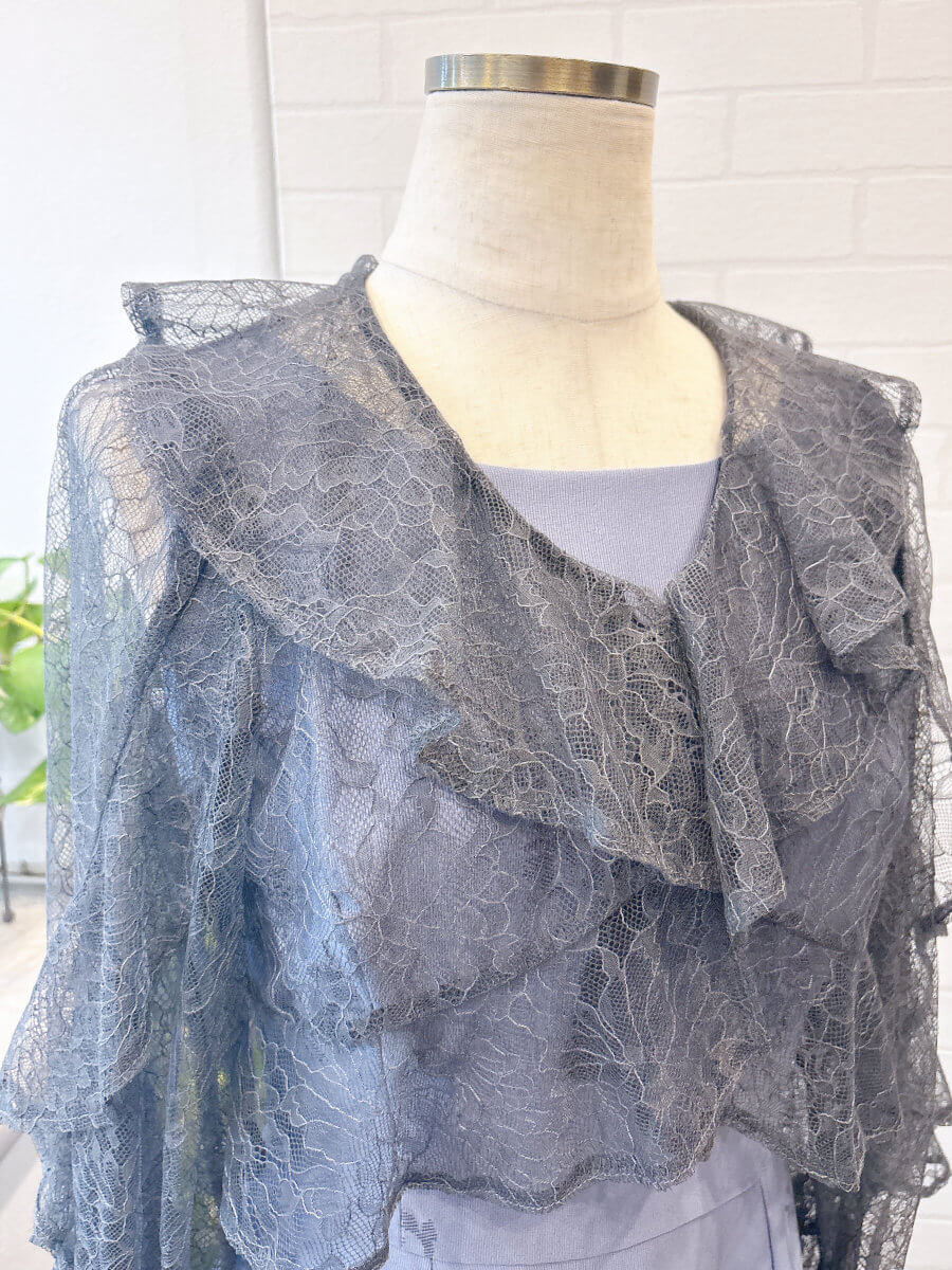 ◇カラー:チャコールグレー ◇商品について:ドレープが上品なレースボレロです。シンプルなドレスに合わせやすい商品です。