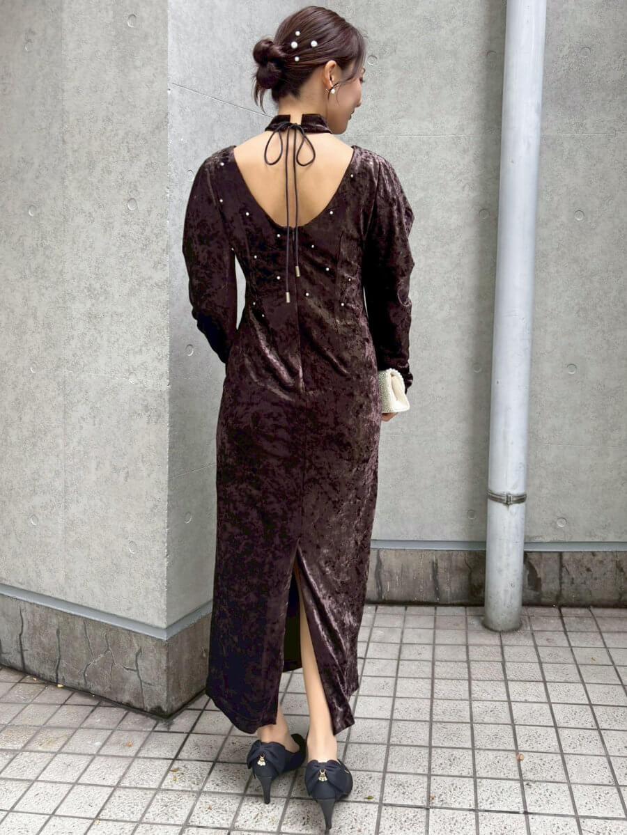 ◇付属品:ベロア素材のチョーカーでデザイン性アップ。後ろ姿のリボンもぬかりないデザインです。