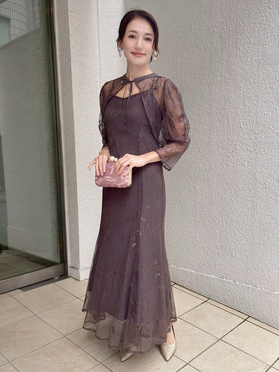 ◇商品について:総レースのキャミソールとボレロのセットアップドレスです。キャミソールのかた紐部分はアジャスター付きでサイズ調整ができるので身長に合わせてご着用頂けます。ボレロは前後どちらでも着用が可能です。ハイウエストにすっきり見せたい方は前でリボンを背中の露出をカバーしたい方はリボンを後ろに結んでご利用ください。キャミソールドレスはマーメイドのシルエットで程よく美しくスタイルアップ効果が期待できます。