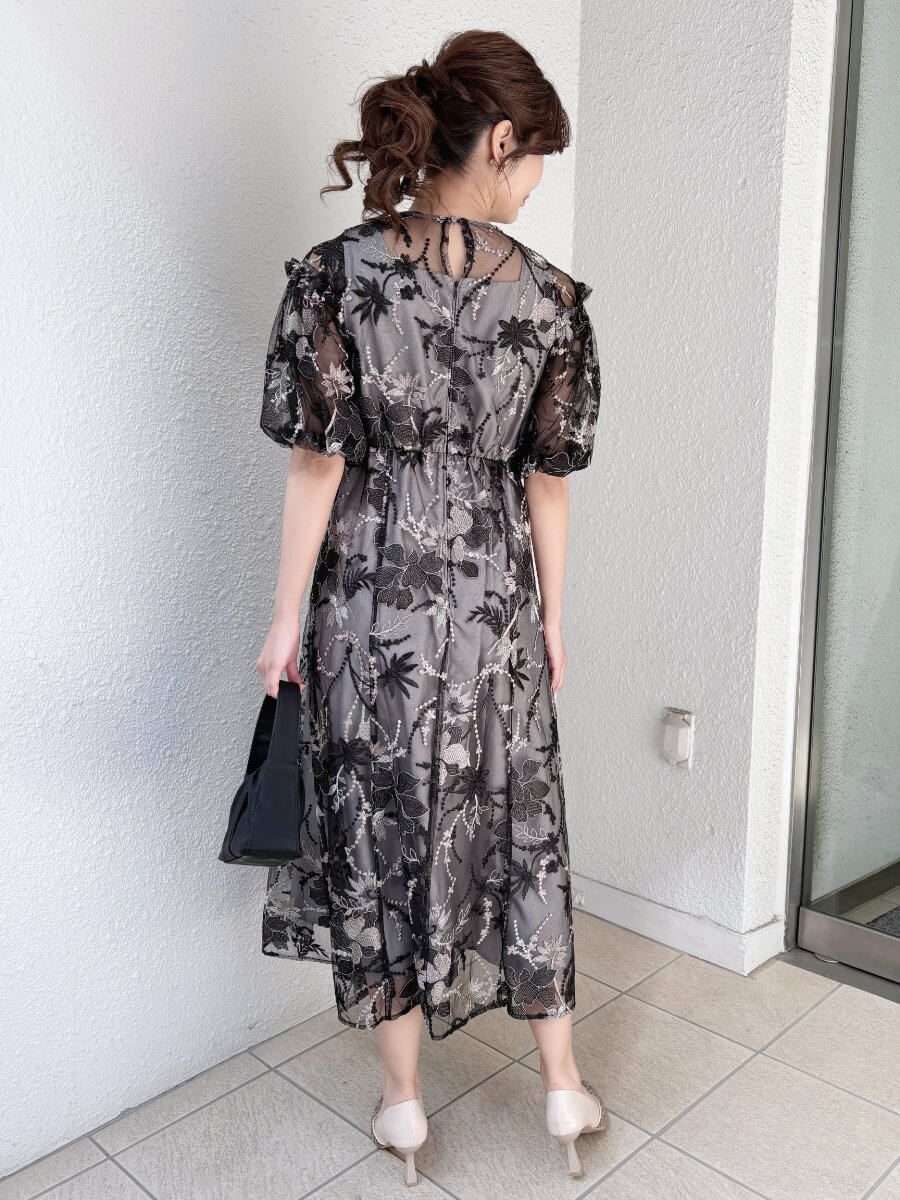 パフスリーブエンブロイダリードレス3LBK2-t