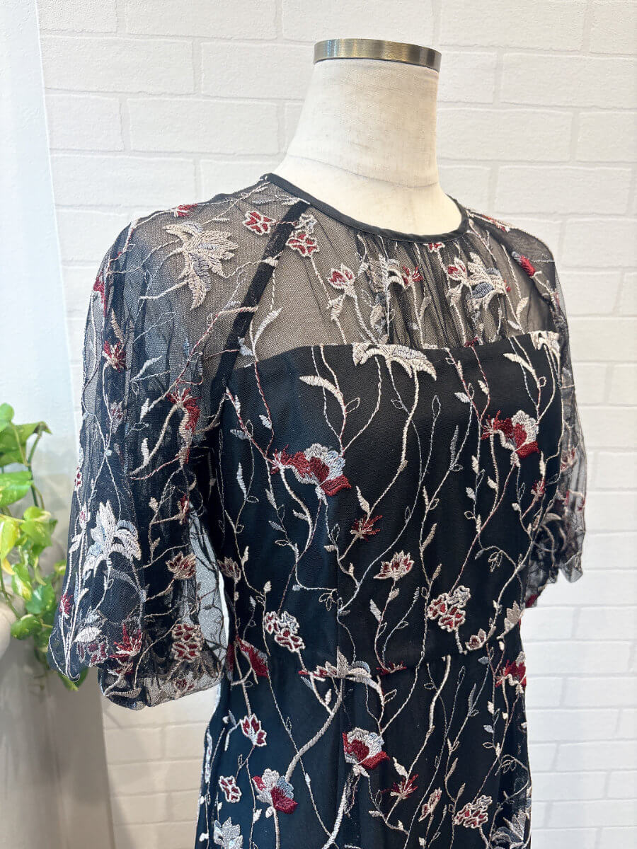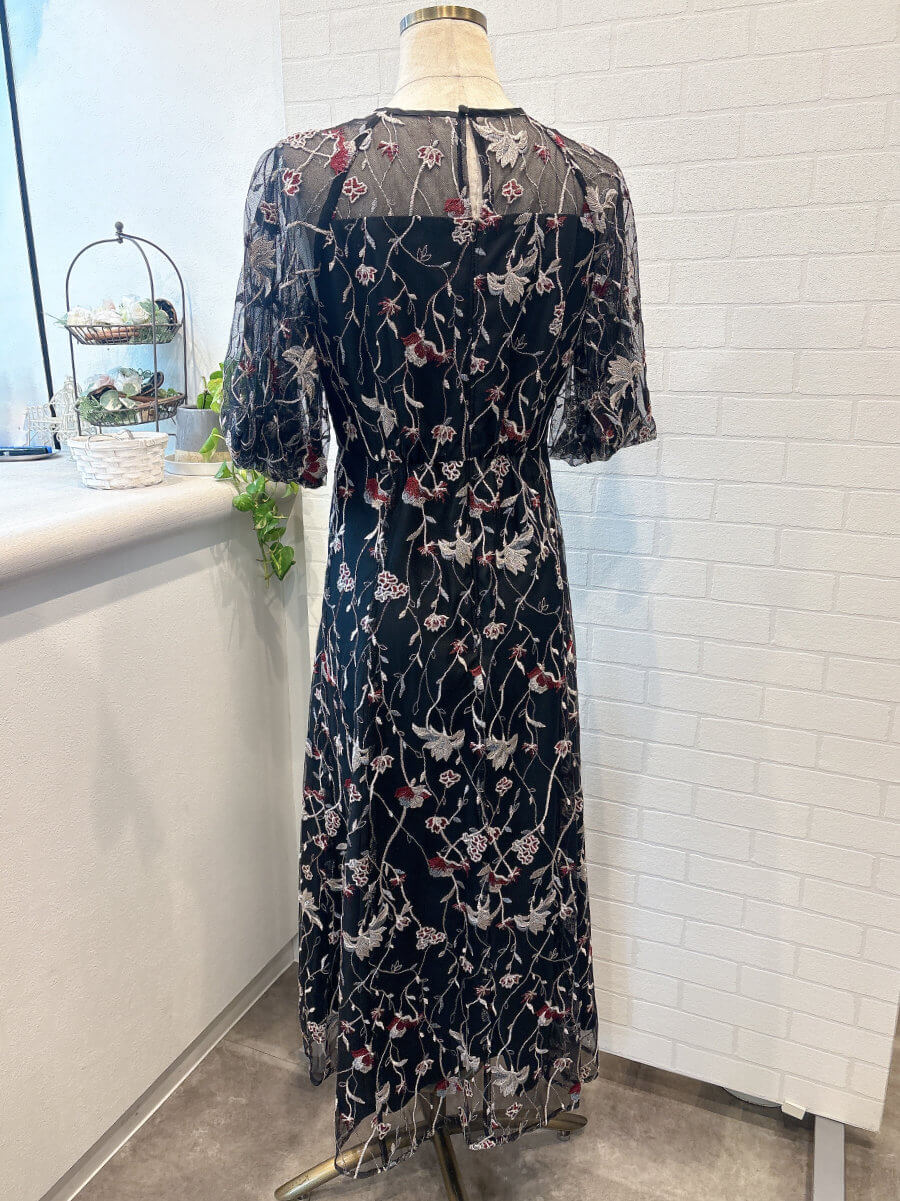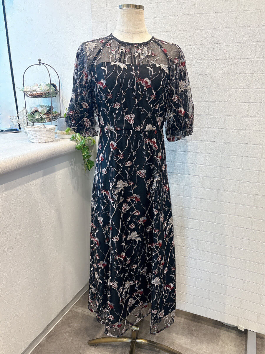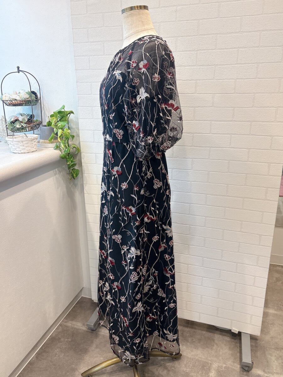 フローラル刺繍シアードレスMBK