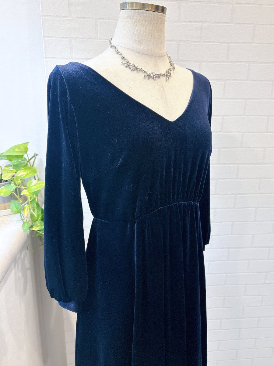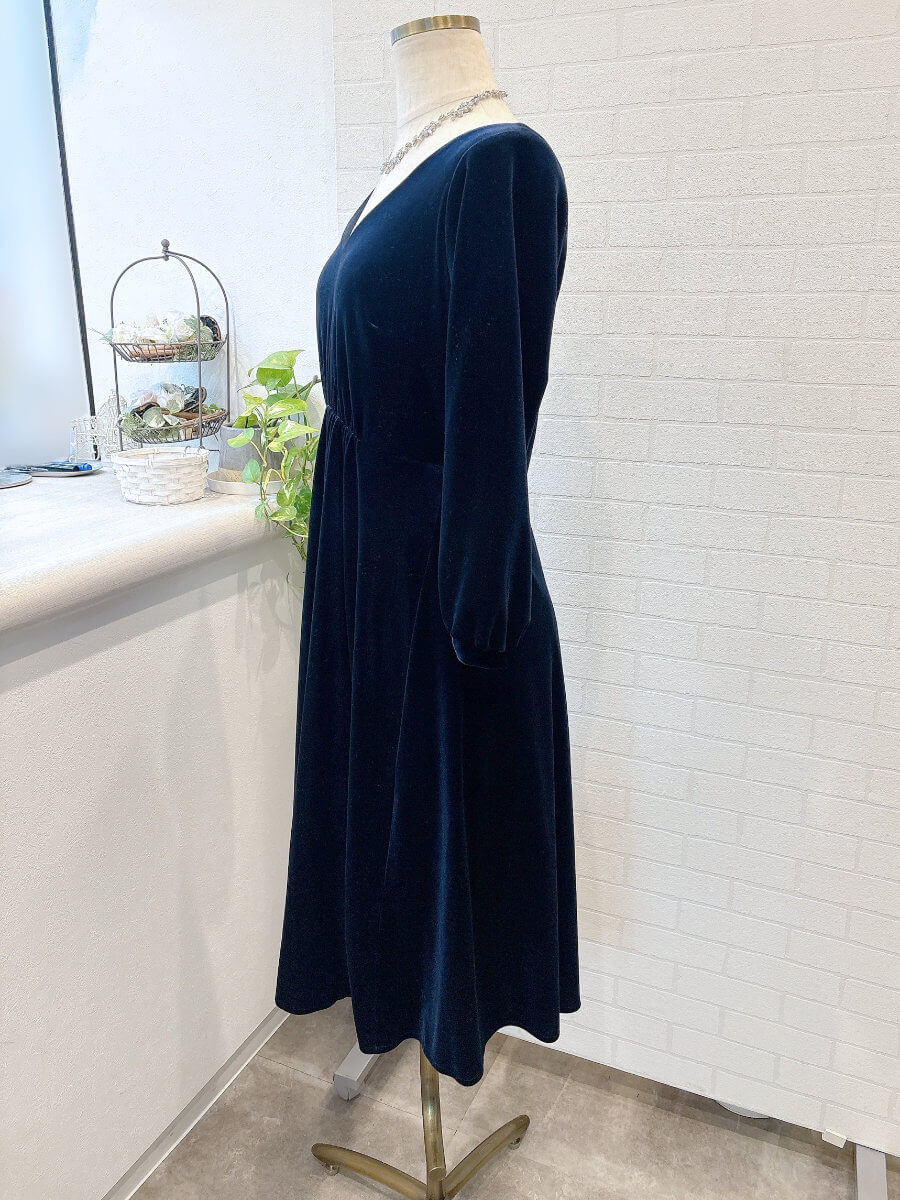 ◇商品について:高級感のあるベルベットドレス。ハイウエストなのでマタニティの方も安心して着用できるドレスです。インポートならではの胸元の開きはありますがインナーなどでご対応頂けます。上質なmade in Britainの拘りのドレスです。