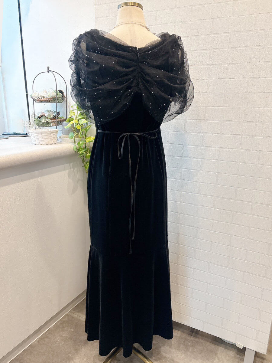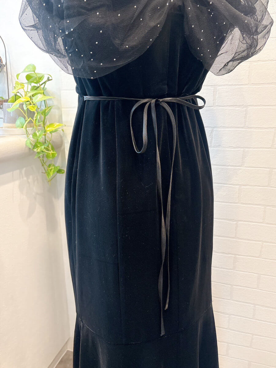 ◇商品について:上品な輝きのあるドットのチュールと柔らかなベロアの組み合わせが華やかなドレスです。